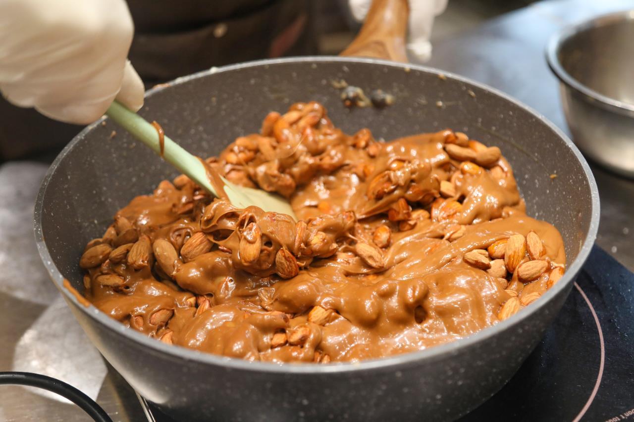 可真正上手他才发现,看似简单的炒糖藏着大学问。“选、洗、炒、熬、捶、形”六道工序,全凭经验把控,尤以熬糖最为关键。