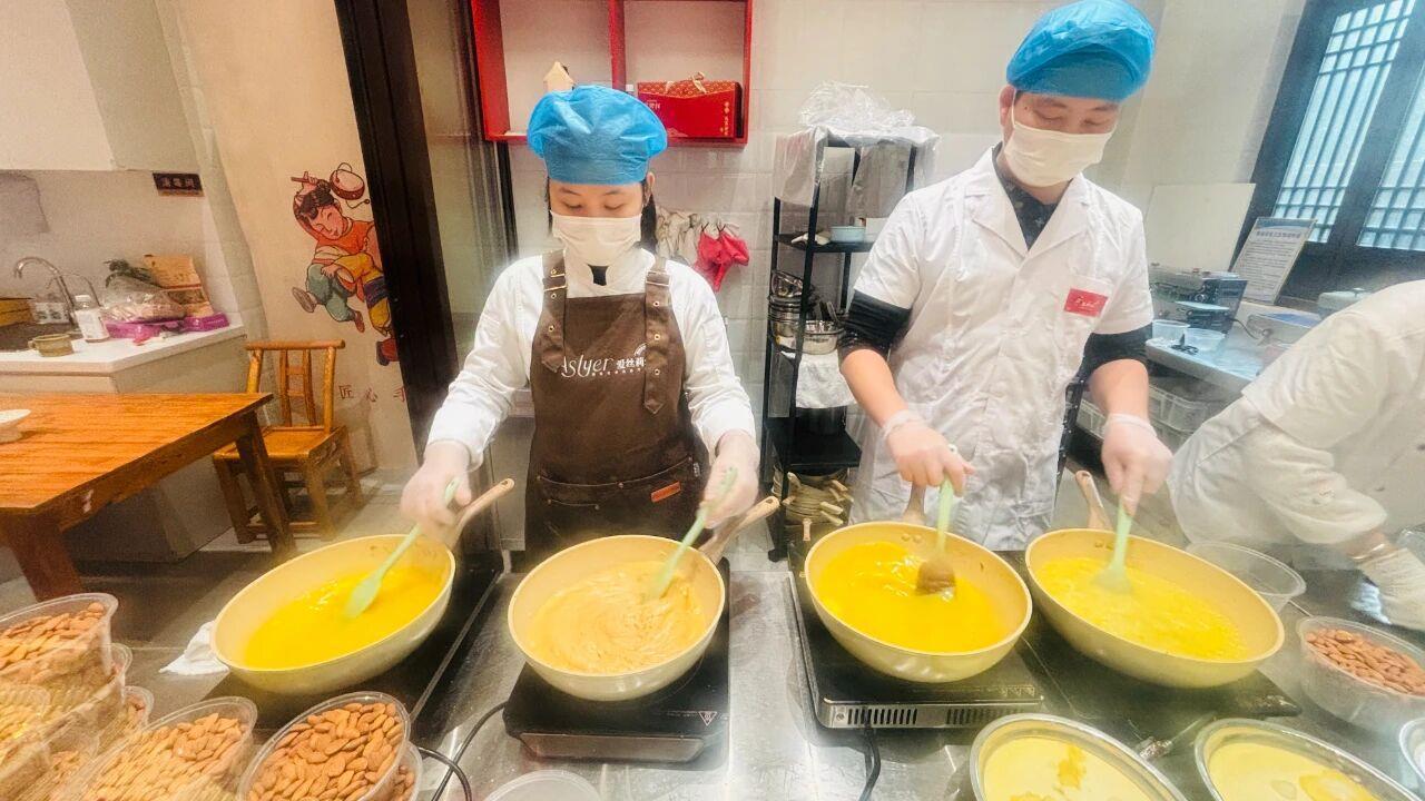 因为是纯手工制作,店里炒糖的师傅都忙翻了,所有炒糖锅同时开火,肖宇浓和师傅们连续奋战72小时,直到最后一批襄糖打包完毕,大家坐在地上笑得合不拢嘴。