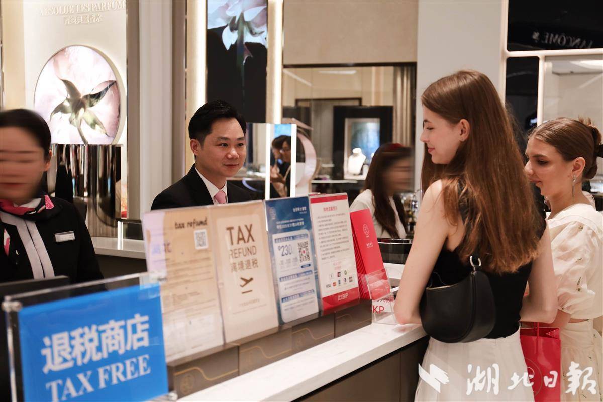 外籍顾客在武汉SKP选购商品后办理退税手续。