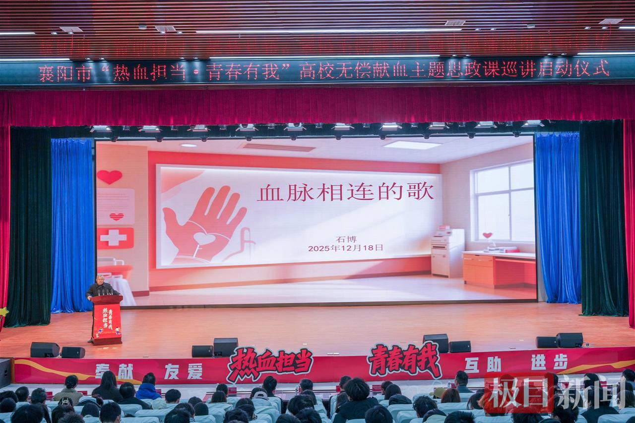 据襄阳市中心血站采血科主任饶艳华介绍,本次思政课巡讲将持续走进在襄各高校,通过专题授课、“热血英雄”事迹分享、互动体验等形式,引导青年学子正确认识无偿献血,积极参与社会公益。