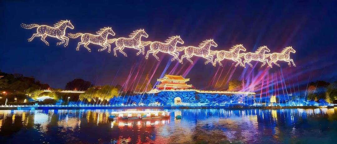 内容:配合地面演艺和护城河灯光,每天2000架无人机进行表演。表演区域在宾阳楼南边,操作区域在东门停车场1000平方米区域。