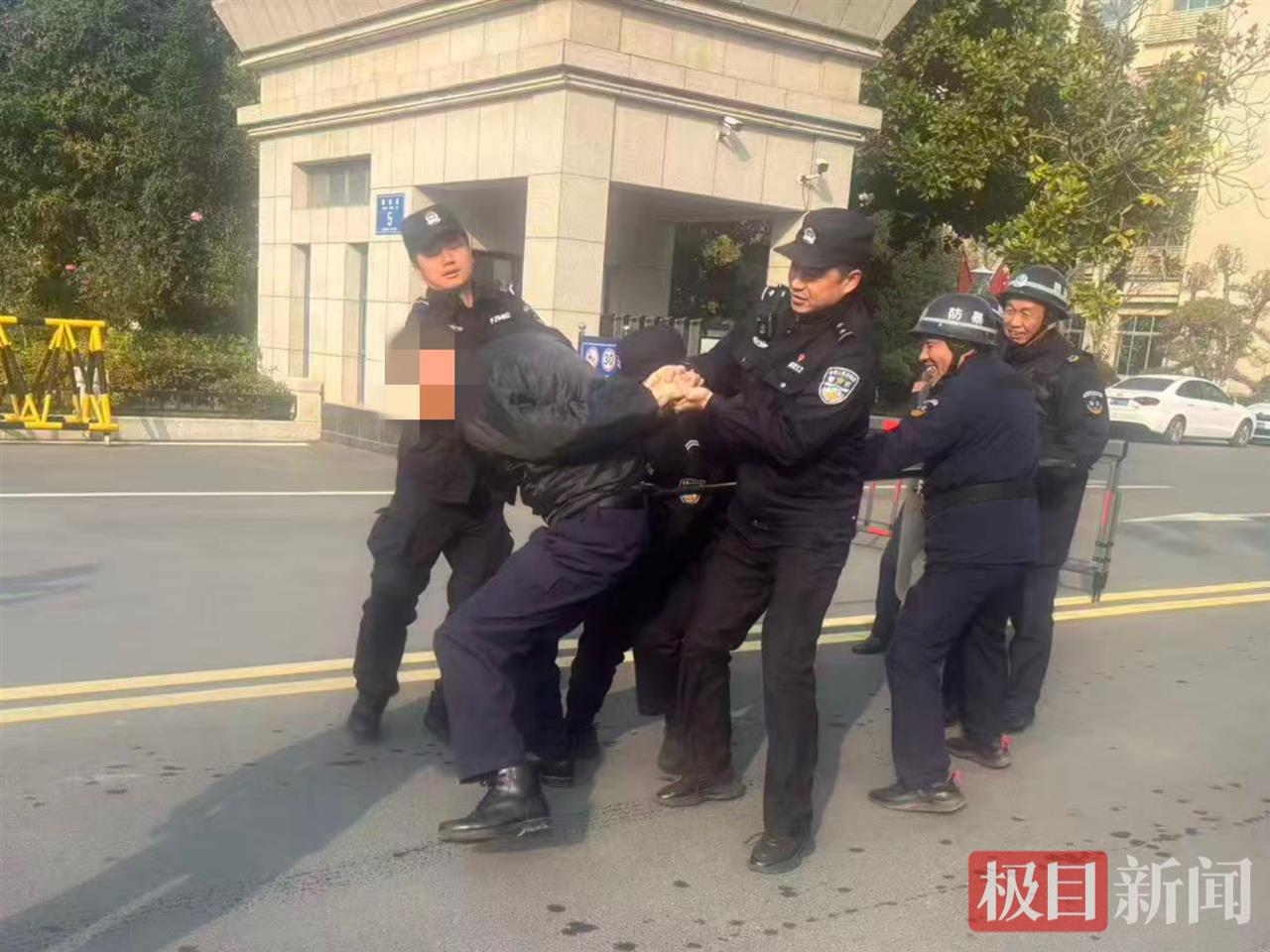 演练模拟“暴恐分子”闯入重点单位意图滋事的场景。接到预警后,单位安保人员立即启动应急响应,迅速按下一键报警装置,同时利用防暴盾牌、钢叉等器械与“暴恐分子”周旋,疏散现场群众至安全区域。派出所民警接到报警后快速抵达现场,按照处置流程形成警戒圈,果断采取强制措施将“暴恐分子”制服,整个演练过程紧张有序、环环相扣,达到预期效果。