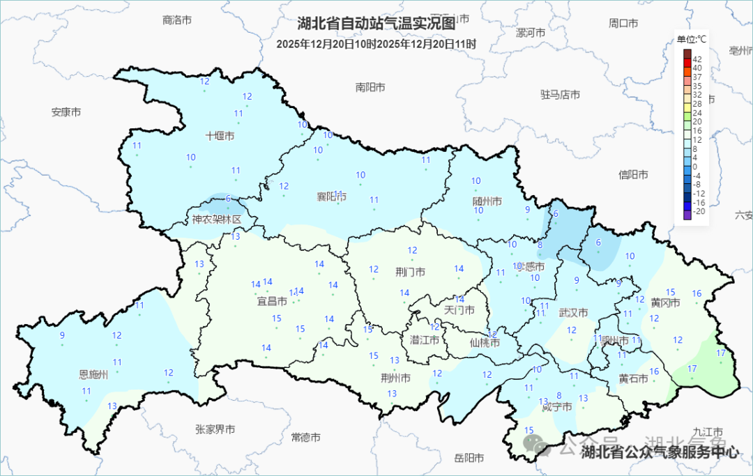 受冷空气影响,预计12月20日上午至前半夜,襄阳东部、宜昌东部、荆门、荆州、天门、仙桃、潜江、随州、孝感、武汉、鄂州、咸宁、黄石、黄冈等地将出现6到8级偏北阵风,建议加固临时搭建物、避免高空作业,防范对交通航运、设施农业等不利影响。
