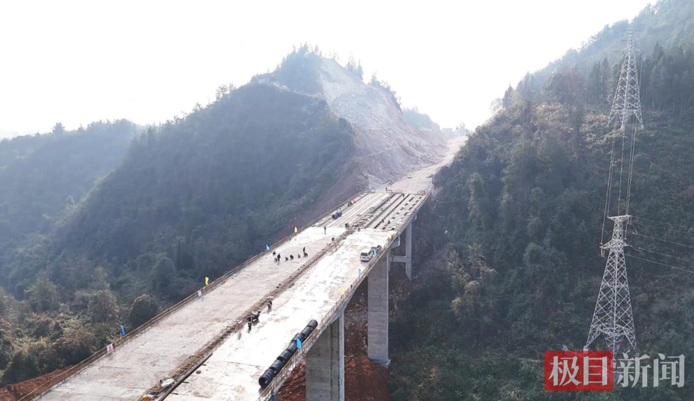 在关键性节点工程老虎洞大桥,桥梁主体已基本建成,工人们正专注开展桥面系施工。同时,整个项目各作业面分段同步推进,200余名施工人员和30余台机械设备在保障安全与质量的前提下,正抢抓有利天气加紧施工。