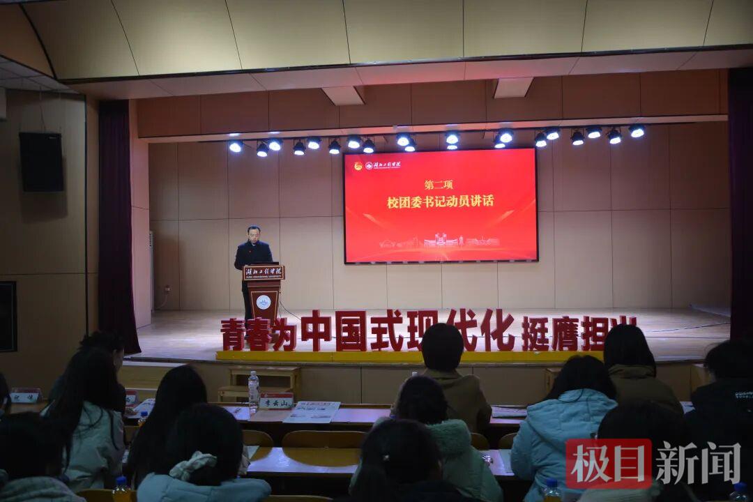 授旗仪式结束后,湖北工程学院团委书记李云山致辞。他强调了无偿献血对于社会公益和生命救援的重要意义,并代表学校向全体学子发出倡议,号召同学们争做科学献血的“示范者”、爱心接力的“传播者”和志愿精神的“践行者”。