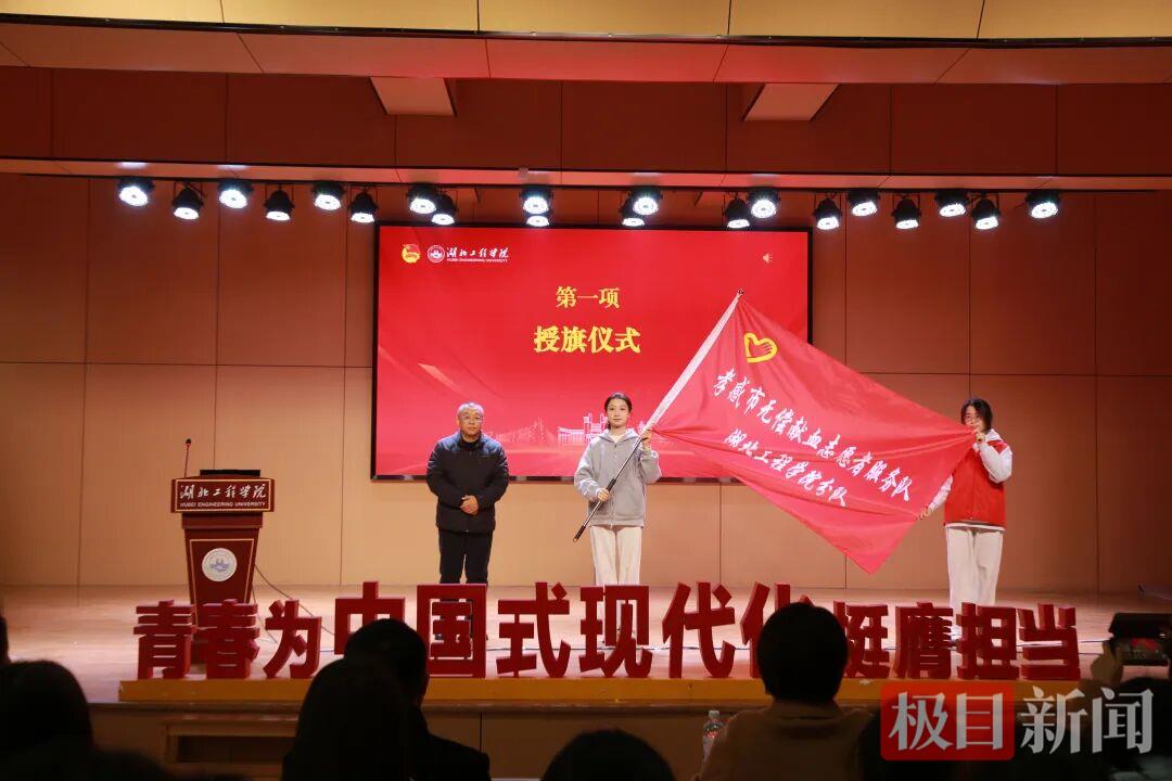 会上举行了庄重而简短的授旗仪式——孝感市无偿献血志愿服务队湖北工程学院分队正式成立,标志着该校无偿献血志愿服务工作迈入了组织化、常态化的新阶段。