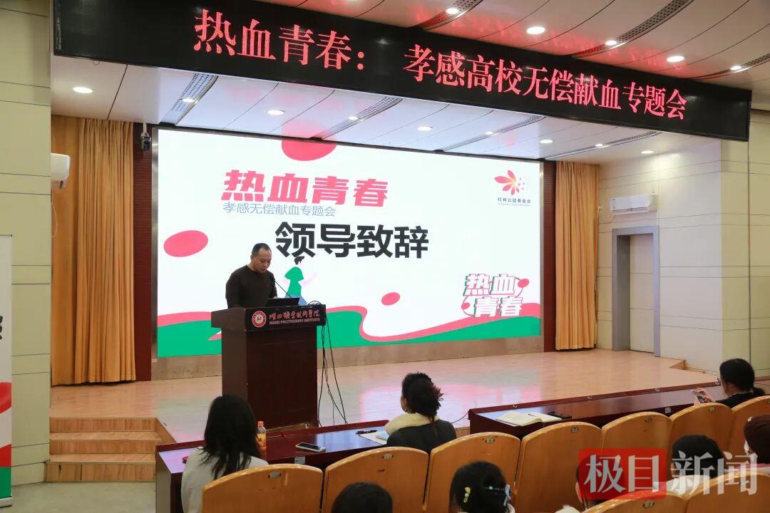 当日下午,专题会移师湖北职业技术学院,校党委学生工作部副部长田勤在致辞中同样向同学们发出了无偿献血倡议,鼓励大家将奉献爱心与践行社会责任相结合,展现新时代大学生的担当。