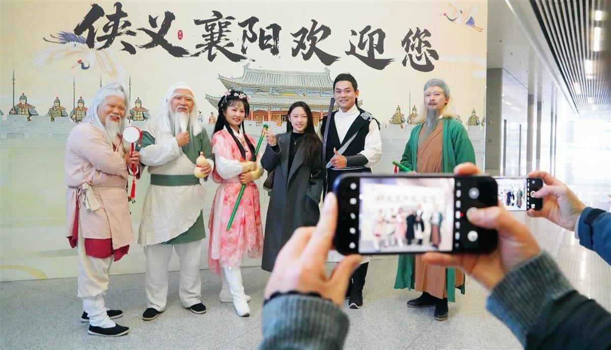 当晚,“相约冬至 侠义襄阳”群星演唱会在襄阳奥林匹克体育中心开唱。为全力保障观演出行顺畅,襄阳侠义公交“武侠天团”准时现身高铁站,11名公交工作人员变身郭靖、黄蓉、柯镇恶、梅超风等经典武侠人物,在站点现场引导客流,3辆侠义主题公交点对点护送歌迷前往场馆,引得歌迷纷纷拍照打卡。