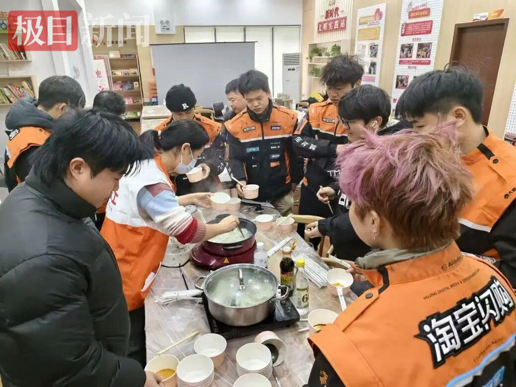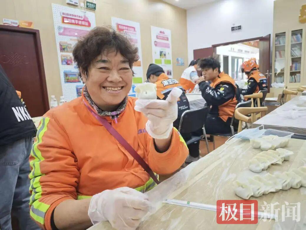 “刚好早上跑单太急,还没来得及吃早餐,等会儿我可得吃一大碗!”骑手王勇手里捏着饺子,笑着跟身边的伙伴说道。随着一阵阵香气弥漫开来,一锅锅热气腾腾的饺子陆续出锅。小哥们围坐在一起,捧着盛满饺子的碗,大口吃了起来。“自己包的饺子就是不一样,馅料足、味道香!”一位年轻骑手捧着碗,一边吃一边憨笑着夸赞,脸上满是满足。