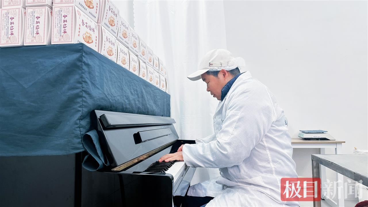 “春花馅饼”是一对中年夫妻开的小店,位于湖北当阳东正街。每天清晨,这个街角的小档口都会飘出新鲜出炉的馅饼香味。在揉面搓饼的忙碌之余,店老板黄旭峰偶尔会掀开钢琴,即兴弹奏几段,令买饼的顾客对这位沾满面粉的白案大叔刮目相看。