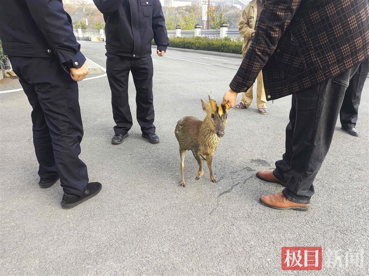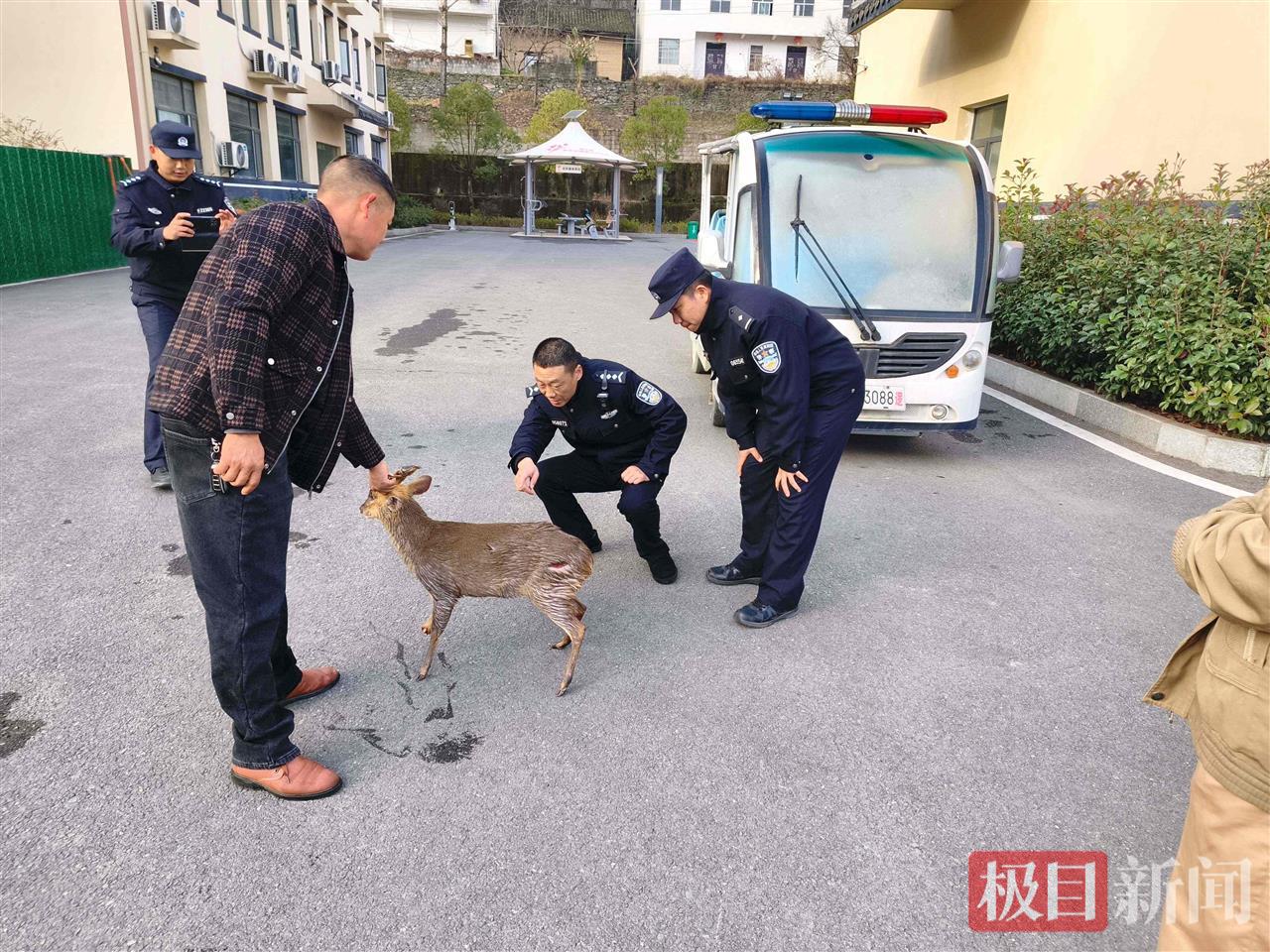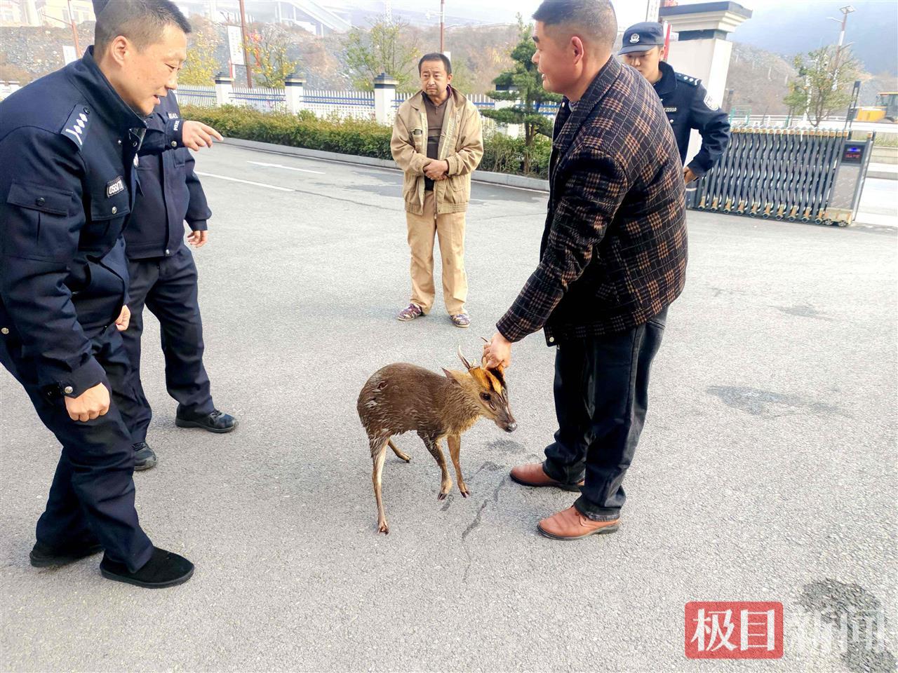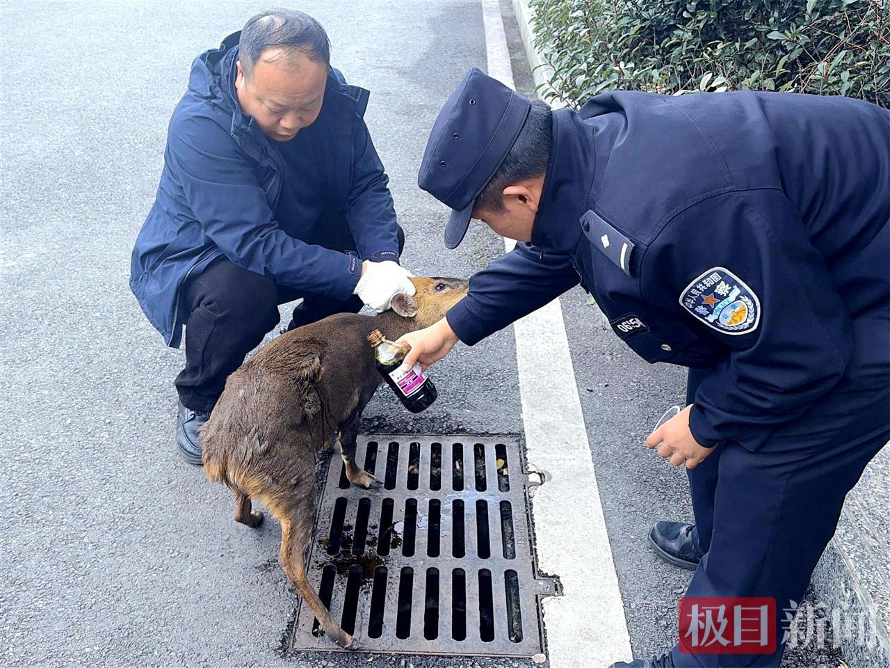 民警在救助小麂