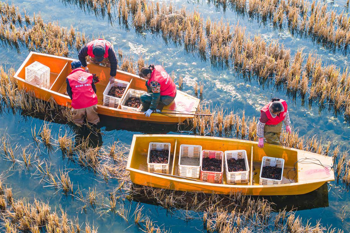12月26日,在潜江市龙湾镇郑家湖四季有虾养殖基地,“潜江龙虾”冬捕活动正式启动。(湖北日报全媒记者 任勇 摄)