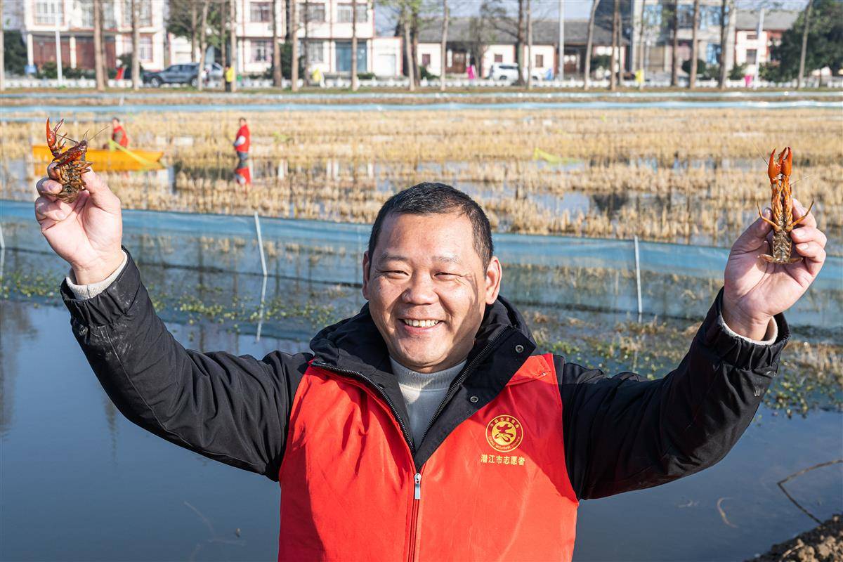 冬捕现场,虾农们争相提笼起虾,脸上满是丰收的喜悦。“现在3到5钱的虾,一斤能卖20多元。”郑家湖村养殖户刘军涛承包500亩虾稻田,推行“早稻+冬虾+早春虾”循环模式,实现“一田三收”。相比以往单季养殖,仅冬虾一季每亩就能增收约2000元。