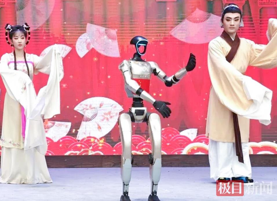 人形机器人与黄梅戏演员共舞(通讯员徐华供图)