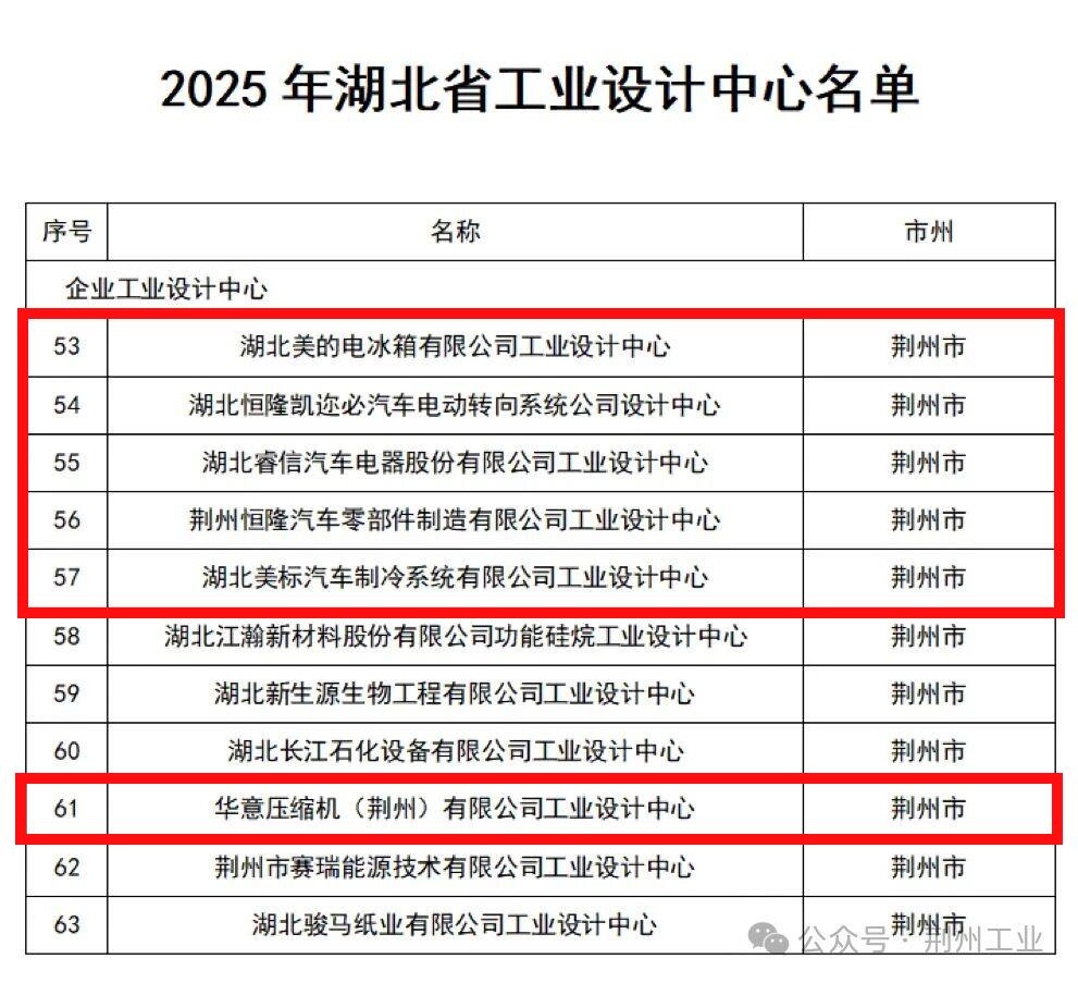 近日,湖北省2025年度省级工业设计中心认定名单正式公布,荆州经开区6家企业工业设计中心成功上榜。