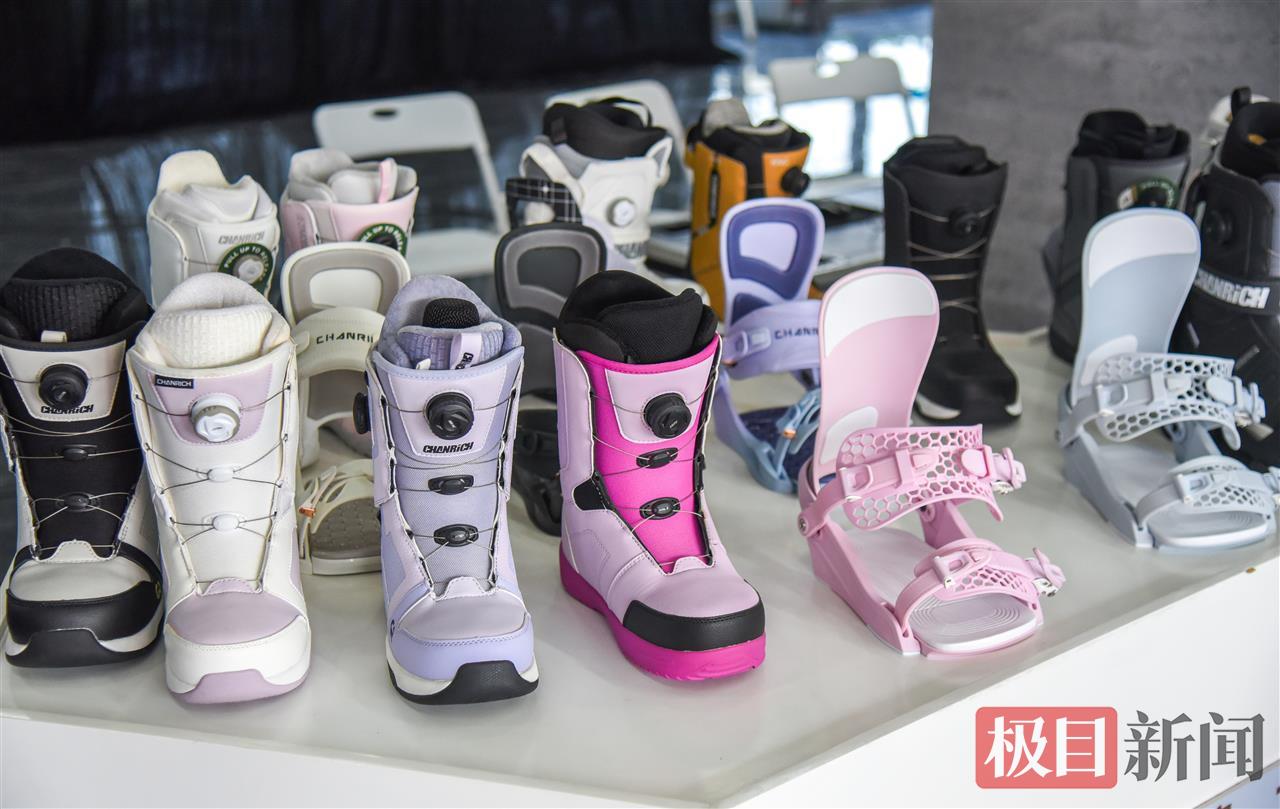 湖北翔驰运动用品股份有限公司展示的滑雪靴。(新闻记者 黄志刚 摄)