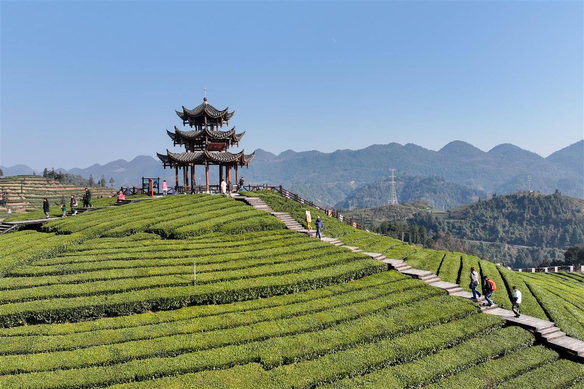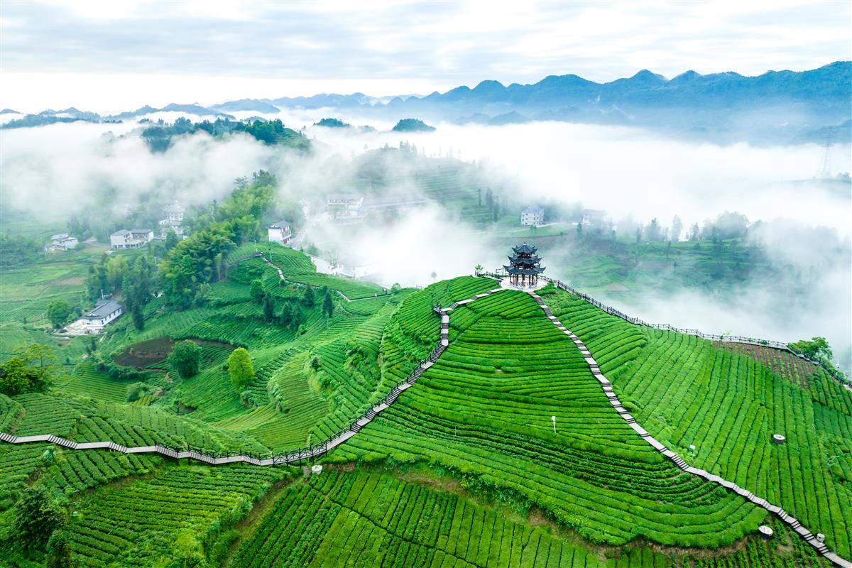 依山就势修建的游步道、观景台、茶亭廊桥,将连绵茶山装点成诗意画卷。