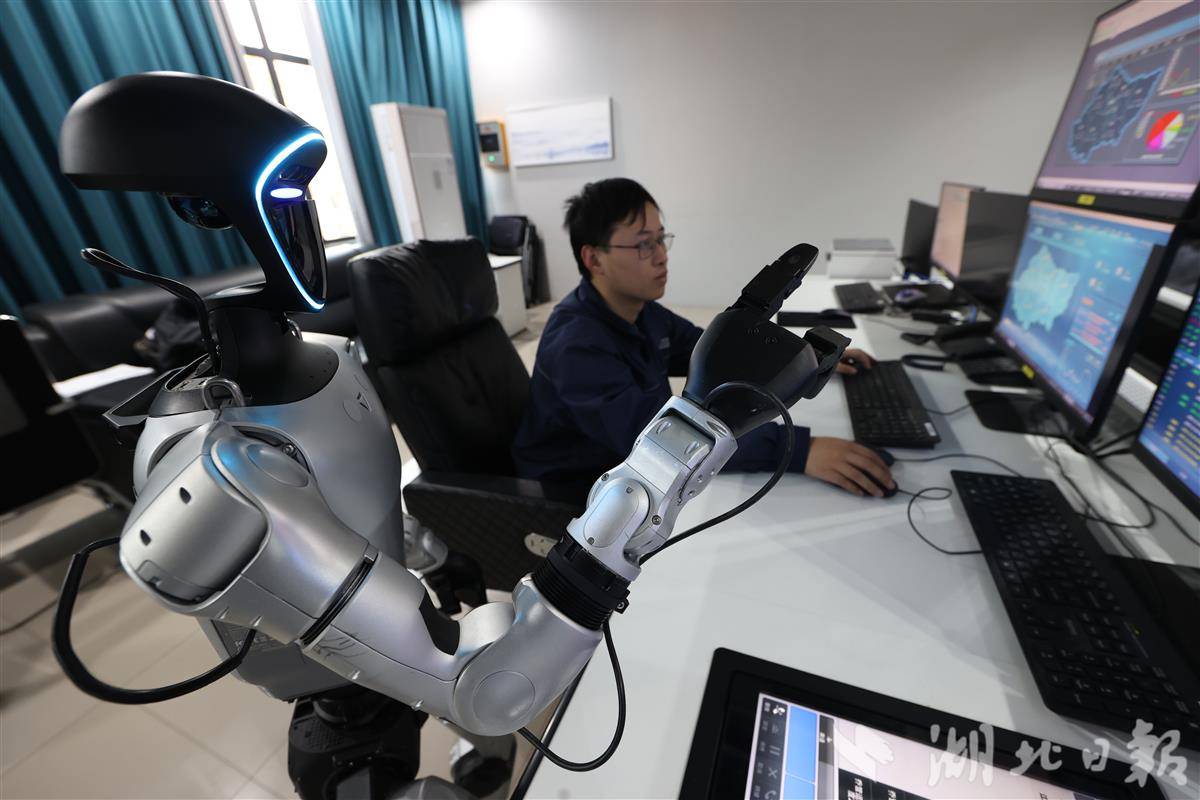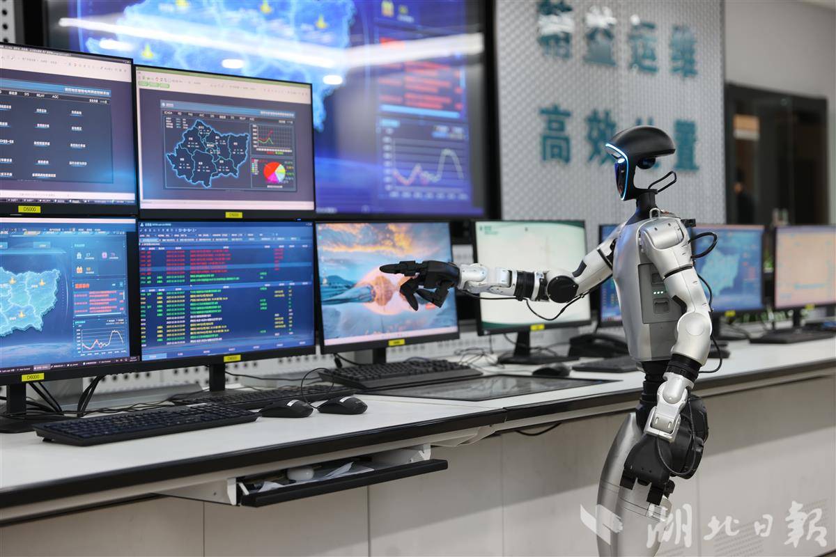 12月26日,在国网襄阳供电公司江北集控站监控大厅,一台搭载43个灵活关节的人形机器人正专注的“盯屏”。
