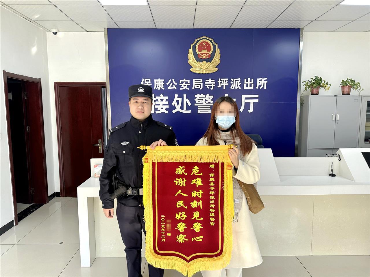 12月30日,随州广水市民祁女士(化姓)专程驱车三百余公里,来到保康县公安局寺坪派出所,将一面绣有“危难时刻见警心 感谢人民好警察”的锦旗送到民警杨煜手中,哽咽致谢,用最真挚的方式表达对民警暖心救助的感激之情。