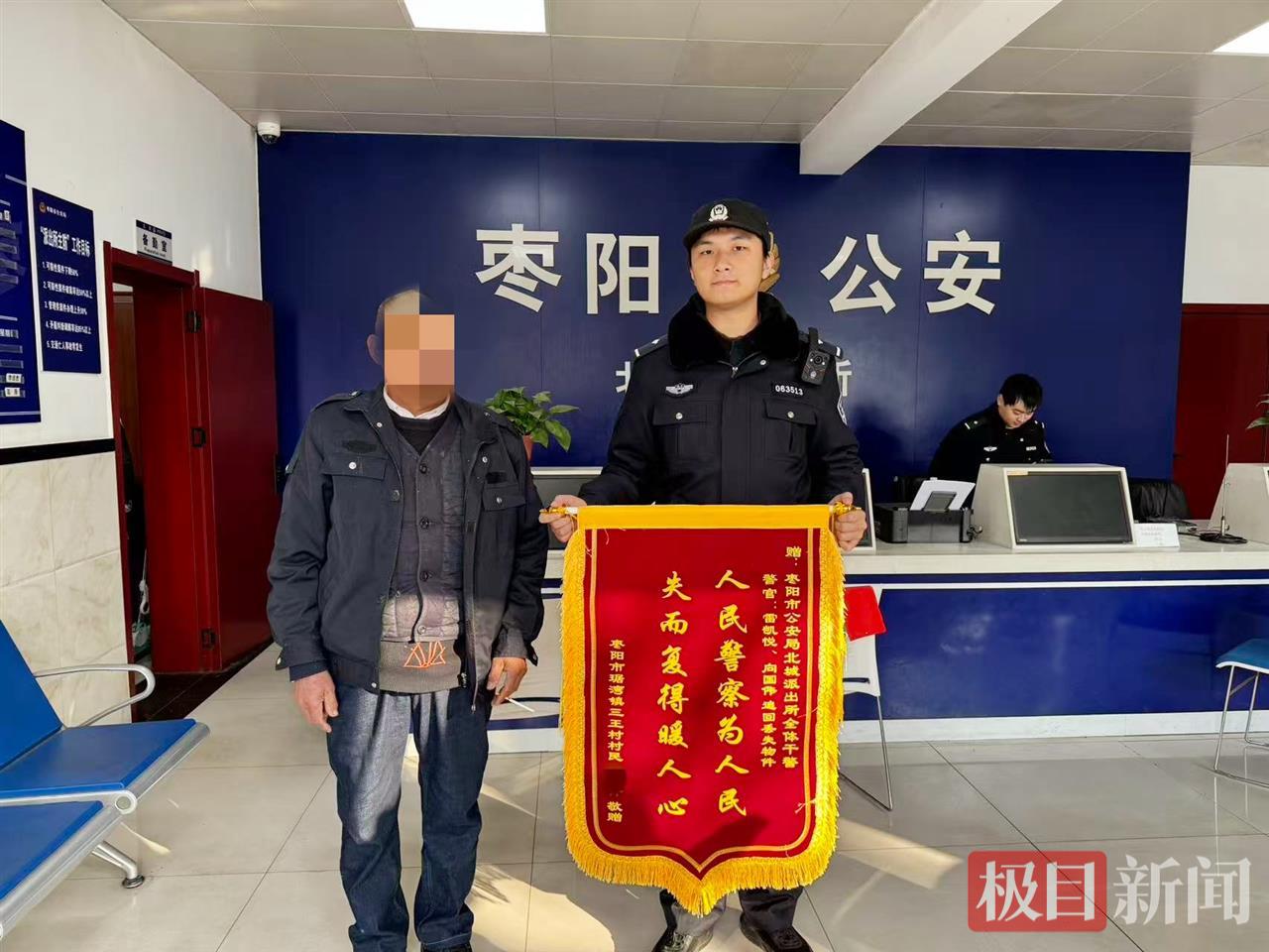 “太感谢你们了!真是为民办实事的好警察!”12月30日,张大爷专程来到湖北枣阳市公安局北城派出所,将一面写有“人民警察为人民,失而复得暖人心”的锦旗送到民警手中,再三感谢民警快速帮其找回丢失的手机。