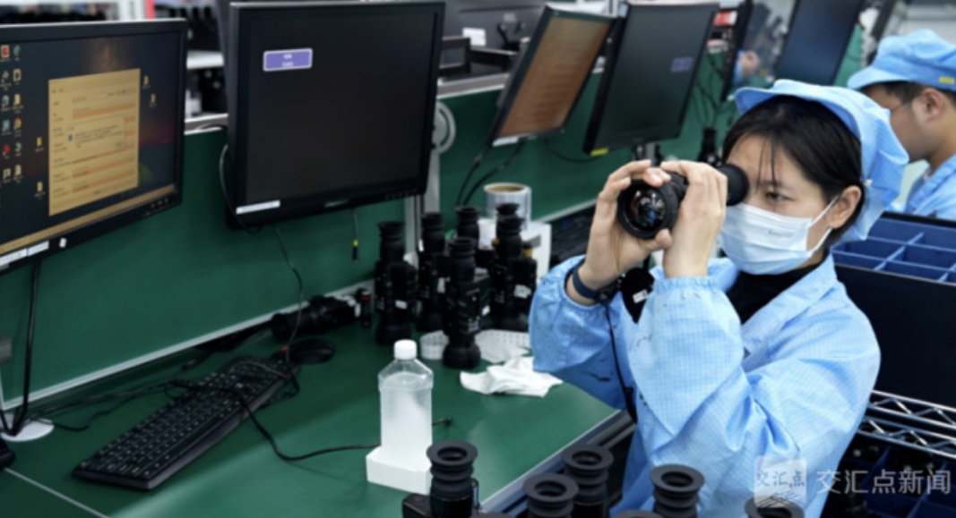 高德红外生产车间内,工人正在测试产品