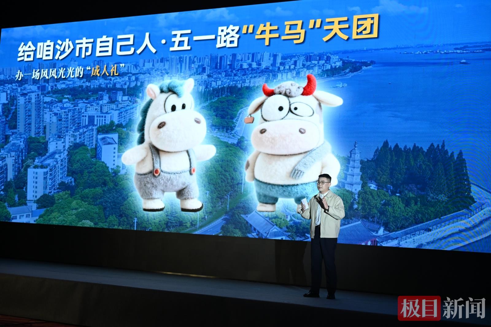 发布会上,文创投资人池晨正式发布了沙市城市文创IP“五一”和“路路”——一头牛和一匹马的形象组合。