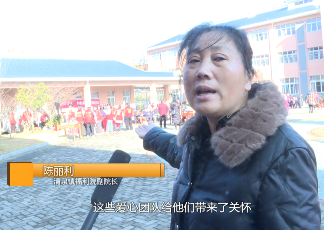 清泉镇福利院副院长 陈丽利:这些爱心团队带来了关怀,让老人感受到社会的温暖,他们非常高兴。