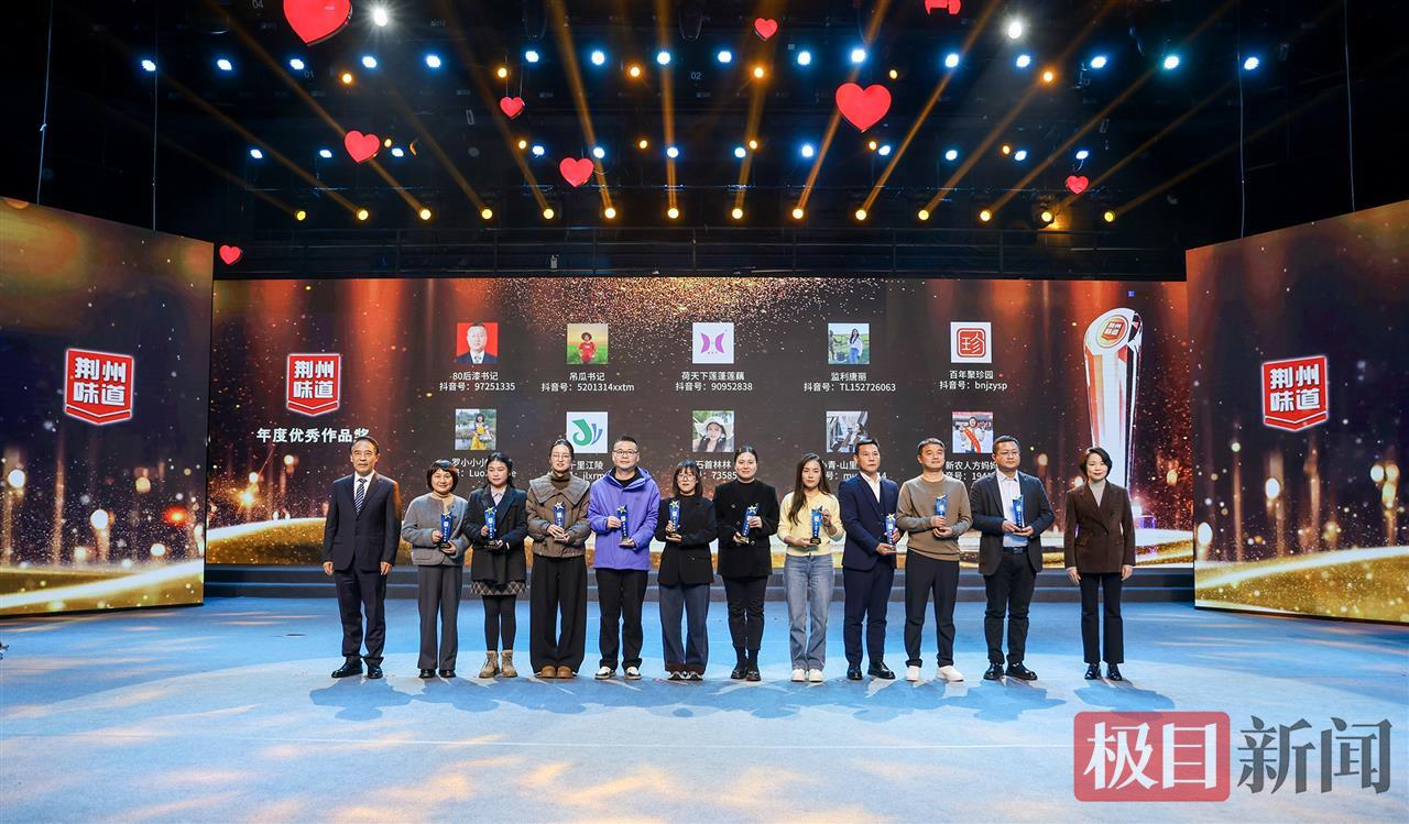 其中,年度潜力作品奖获得者分别是荆州味道(荆州广电)、刘长江(咖啡要加葱)、有味青年、荆楚芳姑娘、松滋鸡运营中心、白条面姐、王婆在石首、荆彩古城、洪湖融媒、寻味荆楚等;年度优秀作品奖获得者分别是80后漆书记、吊瓜书记、荷天下莲蓬莲藕、监利唐丽、百年聚珍园、罗小小小雪、千里江陵、石首林林、小青-山里姑娘、新农人方妈妈;年度人气作品奖获得者分别是城乡兄弟、洪湖文旅、喵喵姐;年度最佳作品奖获得者是楚菜博物馆;年度最佳组织奖获得者是洪湖市。
