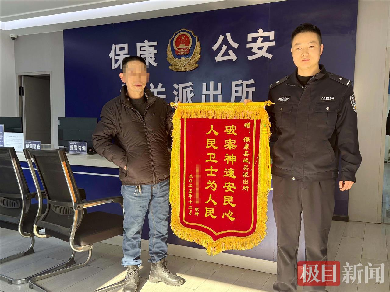 “没想到钱这么快就能追回来,关键时刻还得靠人民警察!”2025年12月30日,湖北十堰房县居民高先生专程驱车百余公里来到保康县公安局城关派出所,将一面绣有“破案神速安民心 人民卫士为人民”的锦旗送到民警手中,以此感谢民警快速破案,为其追回被骗的1600元现金。