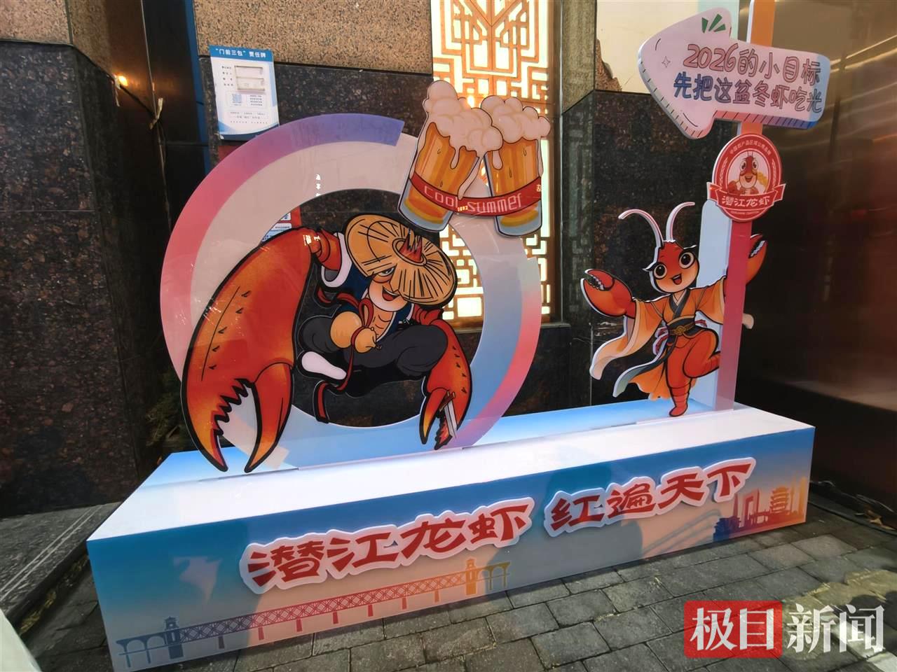 2026年1月1日,潜江龙虾冬季主题打卡装置亮相武汉市核心商圈的热门虾店——肥肥虾庄江汉路红房子店、靓靓蒸虾江汉路汉口STAY店、神豪家宴潜江龙虾店。这些打卡装置以潜江龙虾为主题,融入武汉的地标特色,色彩鲜艳,造型独特,巧妙展现了冬虾的生机活力,不仅为游客提供了打卡拍照的新场景,也让“潜江龙虾红遍天下”的品牌魅力在快门声中持续发酵,吸引更多人在冬季解锁畅吃活虾的消费新体验。