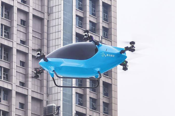 云SW-ONE载人eVTOL在飞行中。(湖北日报全媒记者 薛婷 王际凯 摄)