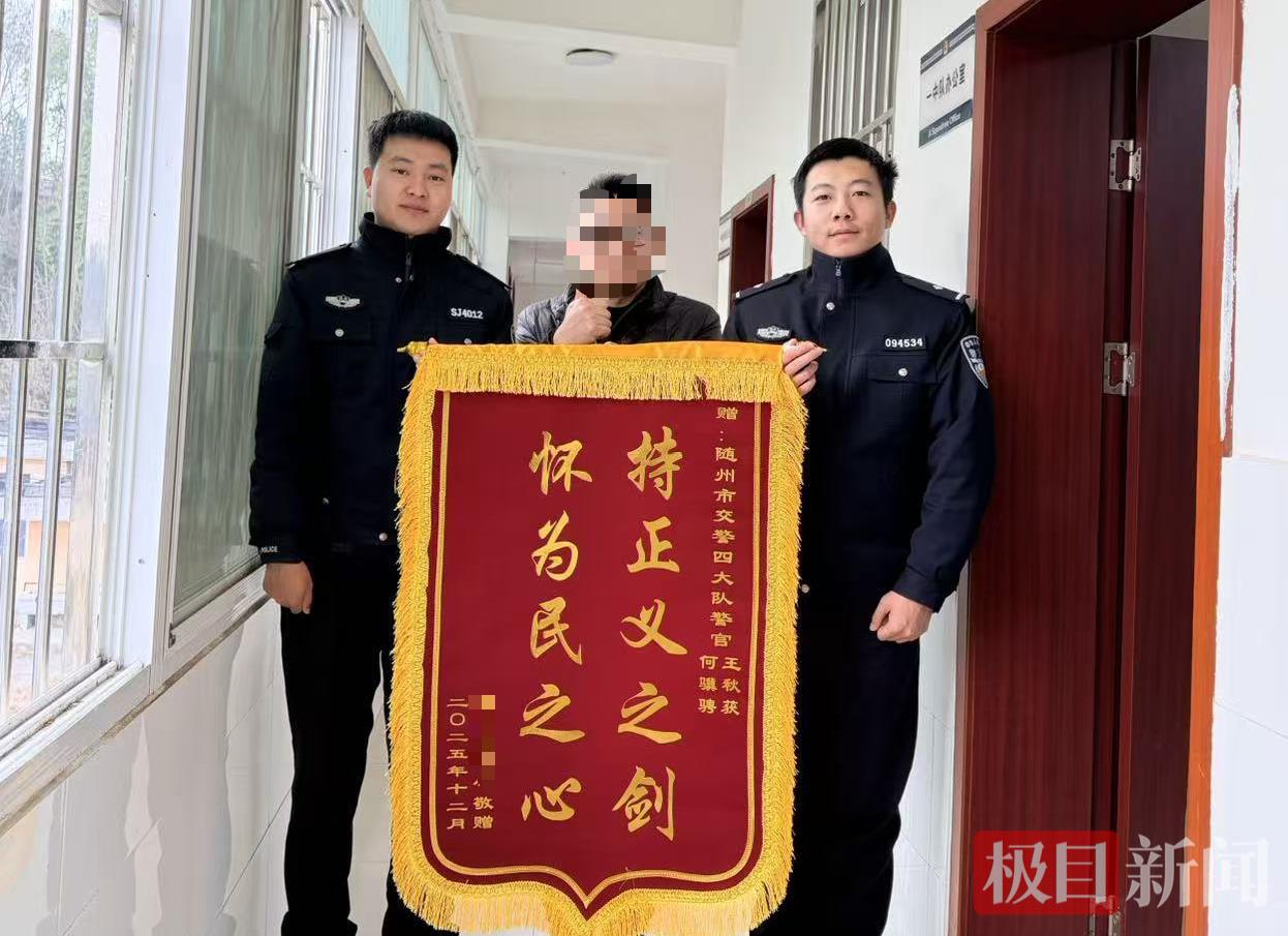 近日,湖北随州市公安局交管支队事故处理大队凭借快速反应、缜密侦查,成功侦破一起肇事逃逸案件。伤者家属为表达感激之情,将一面印有“持正义之剑 怀为民之心”的锦旗送到办案民警手中,对办案民警高效负责的工作态度给予高度赞扬。