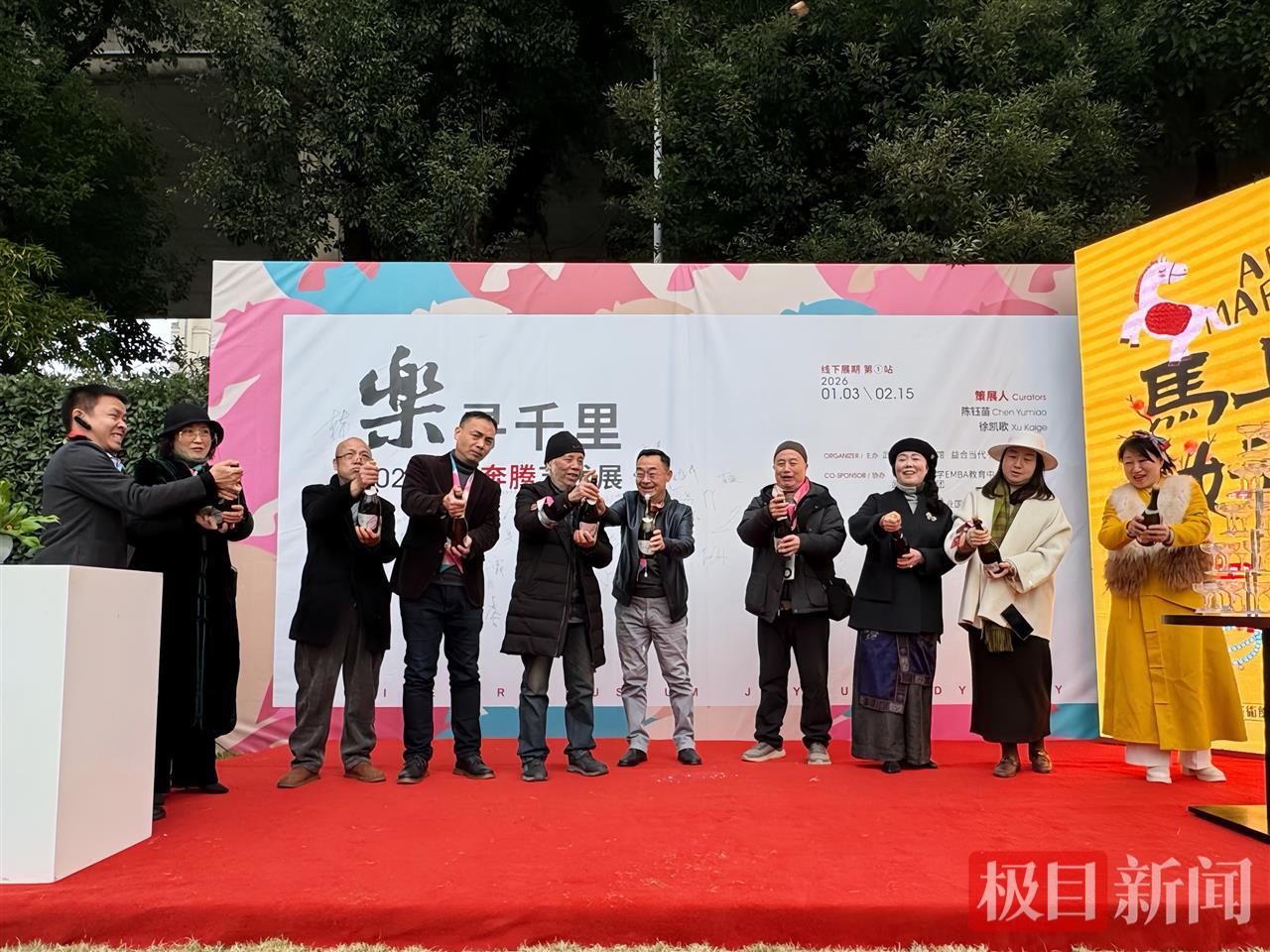 岁末年初,年味渐浓,农历马年的脚步悄然临近。2026年1月3日下午,“乐寻千里·赤马奔腾2026艺术展”在武汉益合美术馆欢乐开展,60余件涵盖绘画、书法、雕塑等多元形式的艺术作品集中亮相,以马为媒传递新春期许,搭建起艺术与大众沟通的桥梁。