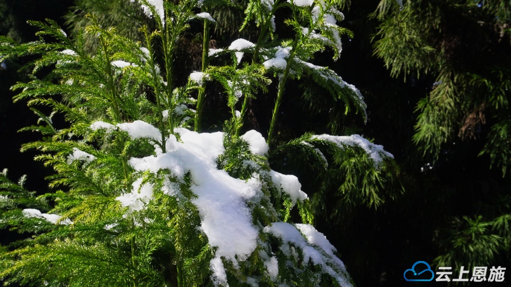云上恩施报道(鹤峰通联记者 杜雪平)久阴初晴的1月6日,记者携着久违的暖意,踏雪探访鹤峰太平沙园。踩着薄雪步入林区,茫茫林海间,雪沫簌簌坠落,似千万玉蝶翩跹,悠悠投入大地的怀抱。连日阴雪的压抑被暖阳驱散,枝头积雪渐渐消融,露出大片纯净的新绿。