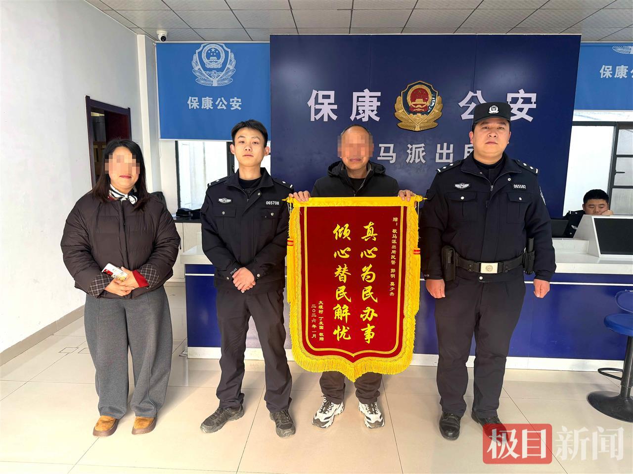 1月8日,湖北省襄阳市保康县歇马镇居民郜大叔(化姓),在村治调主任的陪同下专程来到歇马派出所,将一面绣有“真心为民办事 倾心替民解忧”的锦旗,送到民警郭明、莫少杰手中,再三表达诚挚谢意。