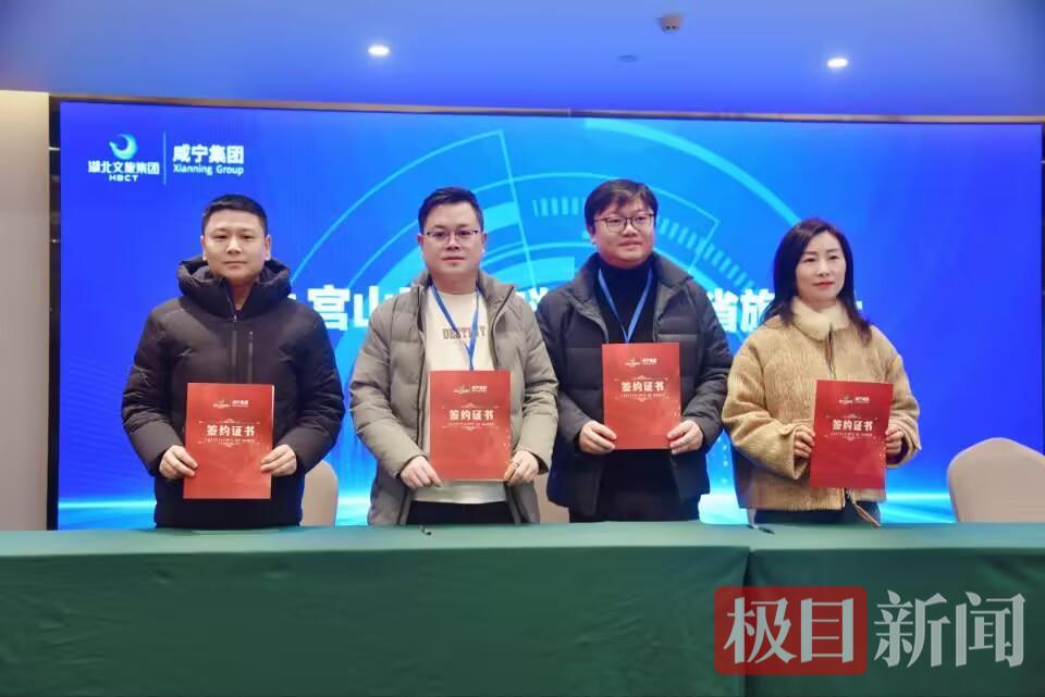 推介会上,九宫山景区正式发布了2026滑雪季系列产品,详细介绍了滑雪场内的多样化雪道、专业设备及一站式服务,突出“冰雪+度假”的融合特色。同时,景区整合易汤温泉、隐水洞、富水湖等周边资源,推出多条冰雪主题旅游线路,展现了咸宁“冰雪+”多元产品体系。会上,九宫山景区与湘、赣、鄂三地渠道服务商达成合作并举行签约仪式。与会嘉宾随后前往九宫山滑雪场进行实地考察与雪上体验。