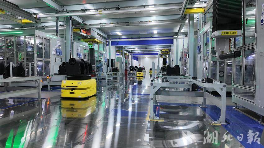 湖北日报讯(记者黄洁如、张竞恒)近日,在湖北孝感的楚能智能生产车间,全球领先的电芯生产线高效运转。这里自动化程度超98%,近百台智能机器人与AGV自主完成搬运、上下料等工作,可轻松转运两吨重的模具。