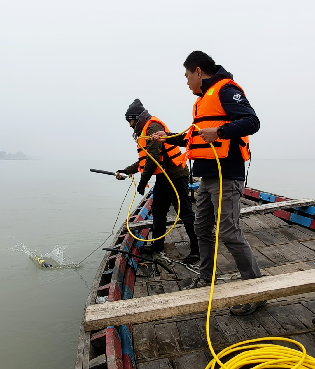 考察时河面雾浓,但设备一入水,信号便开始跃动。