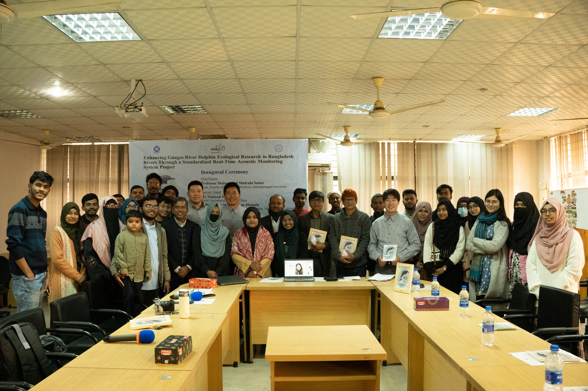 2026年1月,由国家“‘一带一路’国际科学组织联盟”(ANSO)支持的“通过实施标准化实时声学监测系统加强孟加拉国恒河豚生态研究”项目在孟加拉国正式启动。该项目以恒河豚种群监测保护为核心,将中国在长江江豚保护中积累的成熟技术与经验推广至南亚,为濒危淡水豚类的跨国保护搭建起一座科学桥梁。