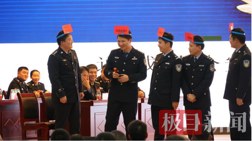 中场休息时,一场趣味十足的“游戏猜猜猜”活动,让紧张的氛围瞬间轻松下来。民警们戴上贴着罪名和违法行为的发箍,通过向队友、观众提问的方式,猜测自己头上的“神秘标签”。“这是行政违法吗?”“和盗窃有关吗?”......