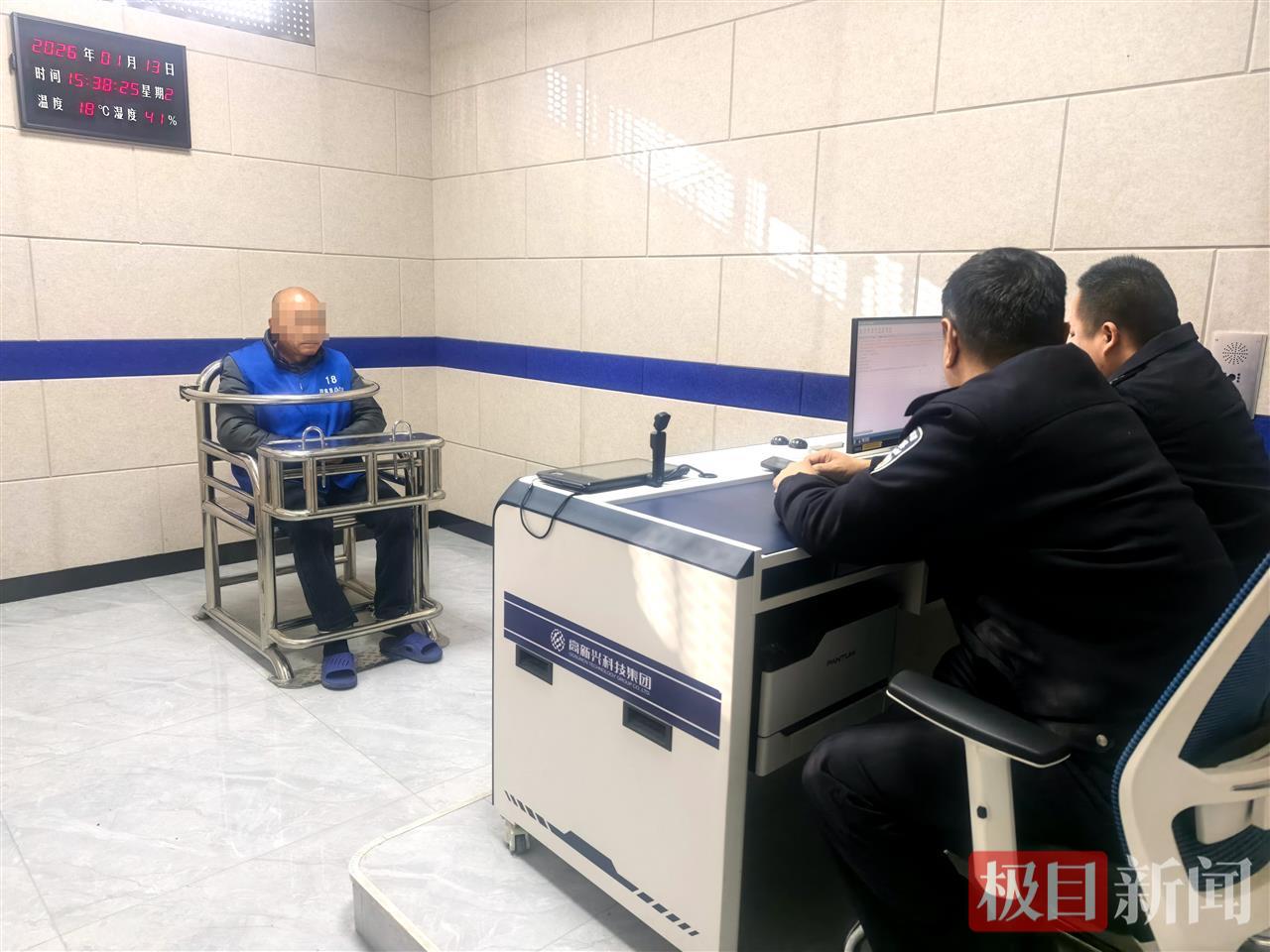 民警在审讯嫌疑人付某