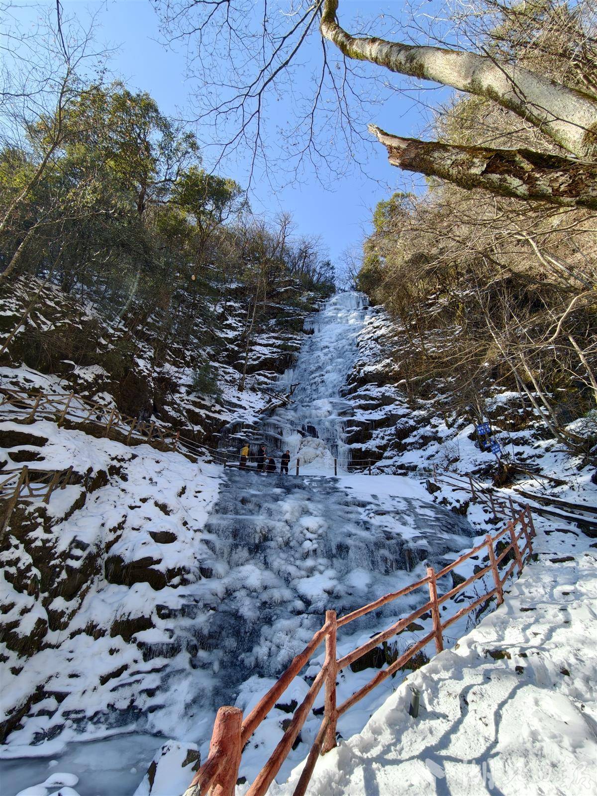 湖北日报讯(记者刘汉泽、刘天纵、通讯员郭军、王闯)飞流直下的瀑布秀出“静态美”——元旦后,十堰市竹溪县营盘山的百米瀑布被冻成“冰雕”,形成了淡蓝色的冰瀑奇观,吸引了不少鄂渝陕游客前来打卡。