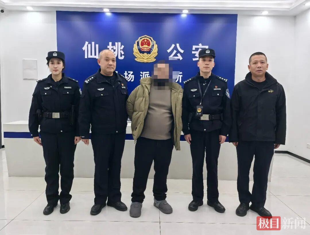 ▲图为父女俩(左二、左一)和同事抓获嫌疑人