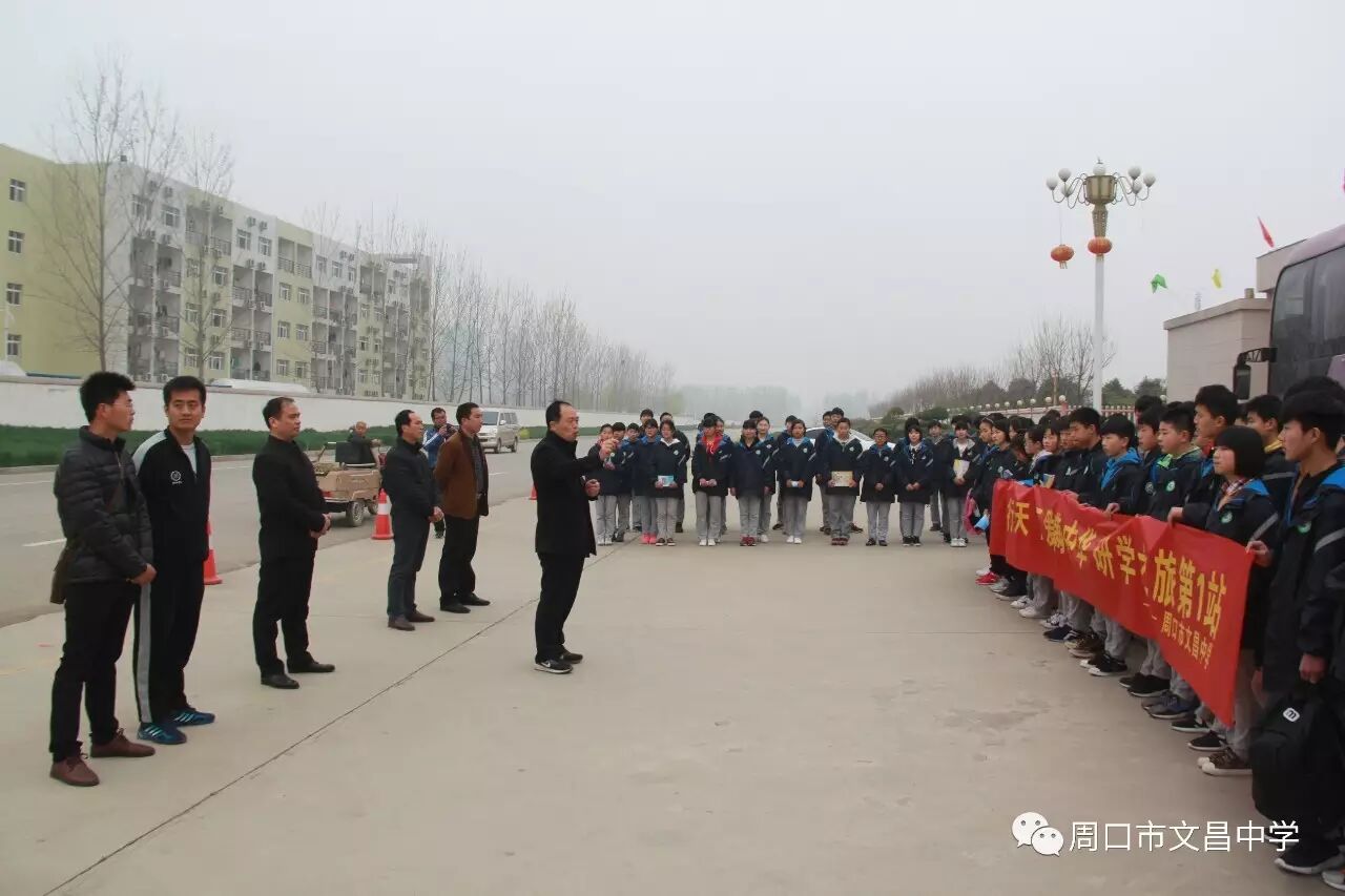 2017年3月24日早上8点,周口市文昌中学校长朱贵华、副校长徐其运,办公室主任叶九辉、督导办主任赵志伟、八年级全体教师和家长学生代表等,为即将踏入行程的八年级孩子们送上最真诚的祝福。朱校长讲到:“当代中学生要拓展知识层面,培养科学兴趣,提高创新能力,参观中国文字博物馆,尽览中国文字发展的光辉历程。了解中国文化的博大精深,感受现代化城市建设脚步,体会中国城市的快速发展。当代中国有雷锋精神、井冈山精神、延安精神、红旗渠精神。我们此次去红旗渠不是去旅行,而是要学习红旗渠那种艰苦奋斗的精神。感受上世纪60年代林县人民在吃不饱、穿不暖的艰苦条件下,林县人民发扬“战天斗地,改变世界”,在悬崖峭壁上开凿出1600多公里的“人工天河”。同时嘱咐孩子们安全出行,发扬团队精神,在旅途中认真学习、执行纪律。