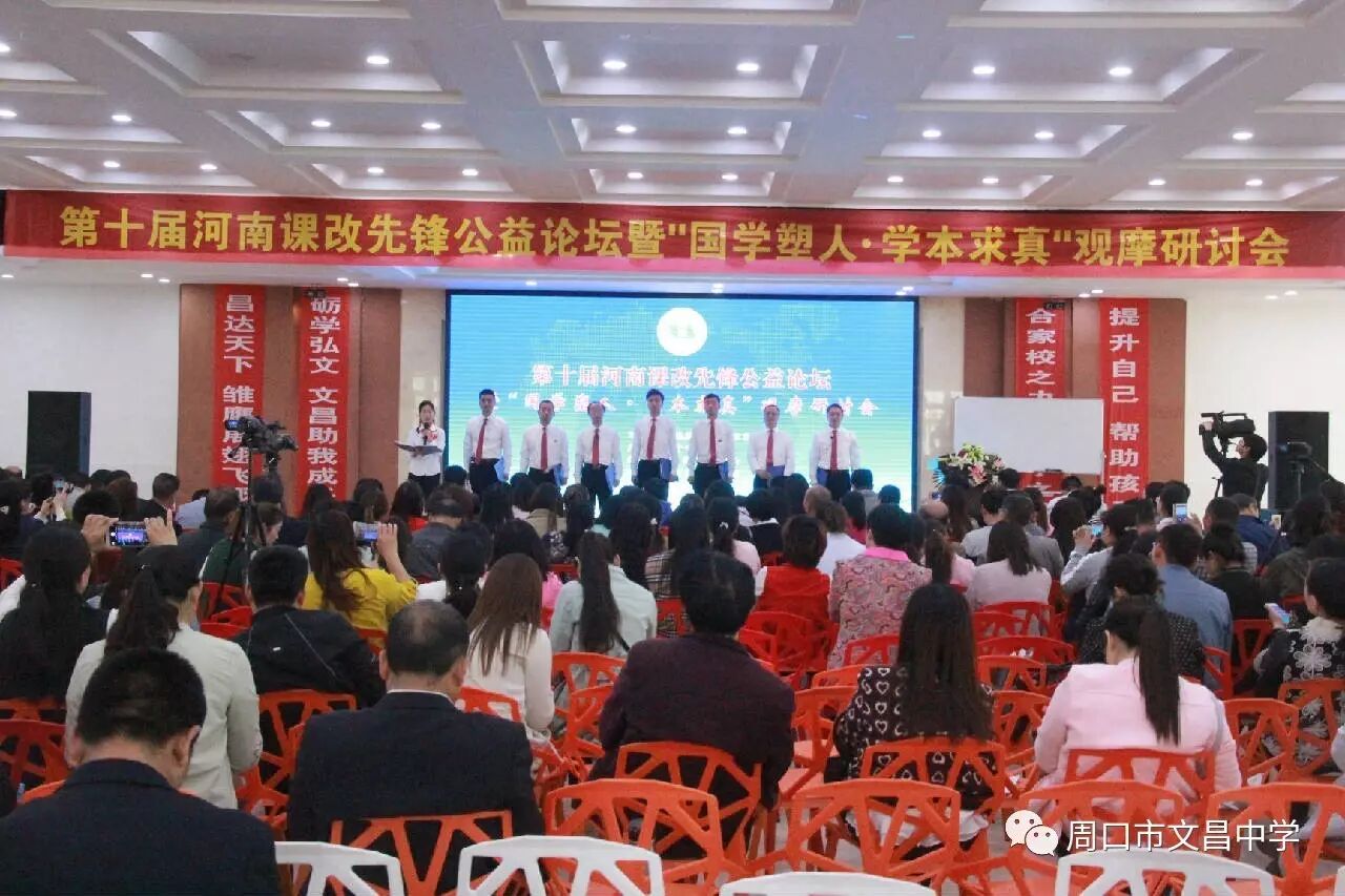 4月23日,为期两天的第十届河南课改先锋公益论坛暨“国学塑人 学本求真”观摩研讨会在周口市文昌中学圆满闭幕,会议吸引了来自省内外多地的校长、专家千余人参加。河南省教育厅新闻中心常务副主任、河南教育时报社总编辑刘肖;中国教育科学研究院院长、教育部基础教育课程教材发展中心主任田慧生;中央教科所研究员韩立福出席活动。上午,文昌中学两个班级分别从语文、英语(精品课)两个学科,全方位向与会嘉宾展示了学本课堂的完整模式,充分展现了文昌中学“智慧求真 学本课堂”的课堂魅力,展现出了文昌学子的综合素质,获得了与会者的一致称赞。