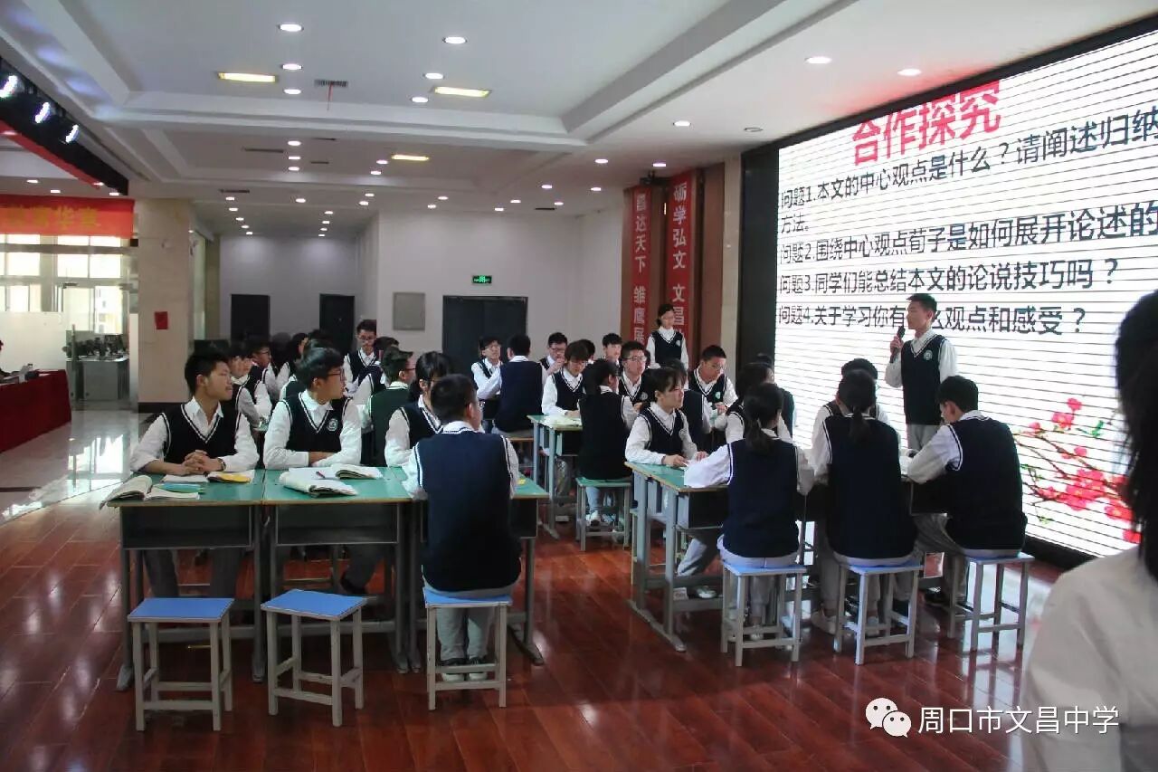 3、周口市文昌中学的实践为突进课堂教学转型提供了富有说服力的例证文昌中学是去年秋季由一个年级推行学本课堂,今年春季开学,才开始在全校推广。对于大部分年级,接触学本课堂只有两个月的时间,但是从今天课堂的情况来看,已经快速实现了从传统课堂向以学为主新课堂的转变。从今天学生的表现来看,我觉得课改的实施是到位的。在课堂上,学生展示的机会,交流的机会,自主思考的机会,一节课中,超过一半的学生有系统性展示的机会,远远多于传统课堂。希望文昌中学继续坚持这样的课堂,只要坚持下来,学生的表达能力、团队组织能力的提升将是前所未有的。传统教育中,很多学生高中三年根本就没有机会系统表达自己的观点,这就是新课改的必要性和关键性。