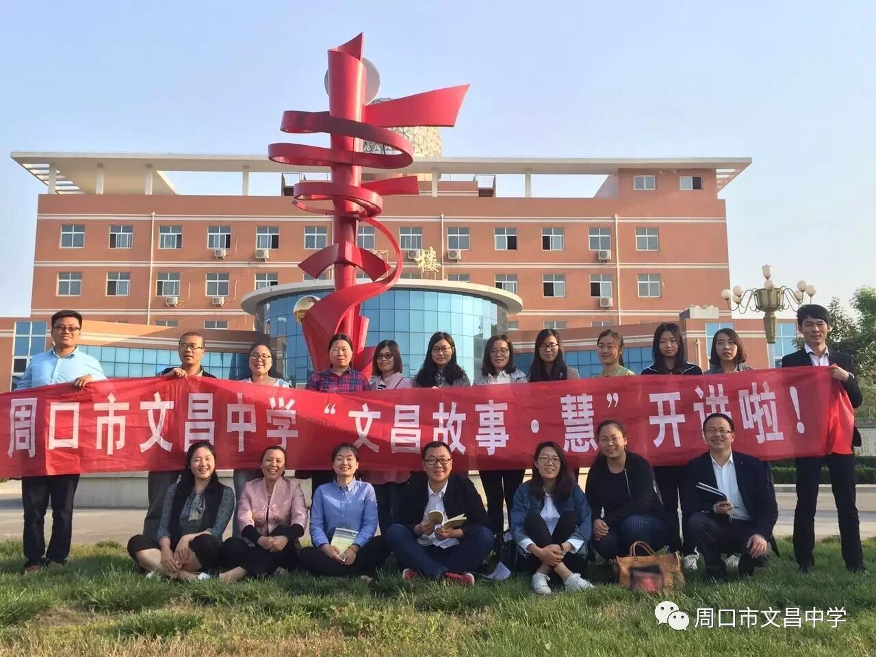 贾主任提到朱校长的教育理念,即以文昌中学为光源,带动一千万人来读圣贤书,改变中国人的读书习惯契合了《学记》的教育理念。教育要以学校为抓手,化民成俗,其必由学乎!最后大家一起到文汇楼后面广场合影。