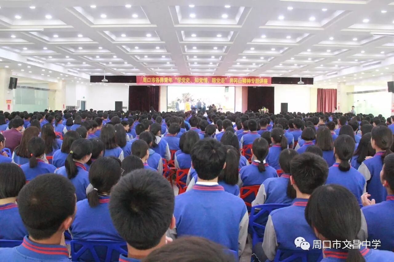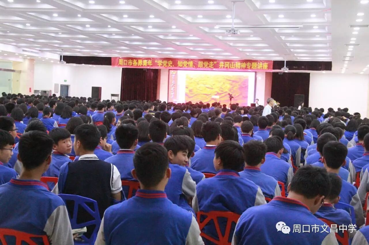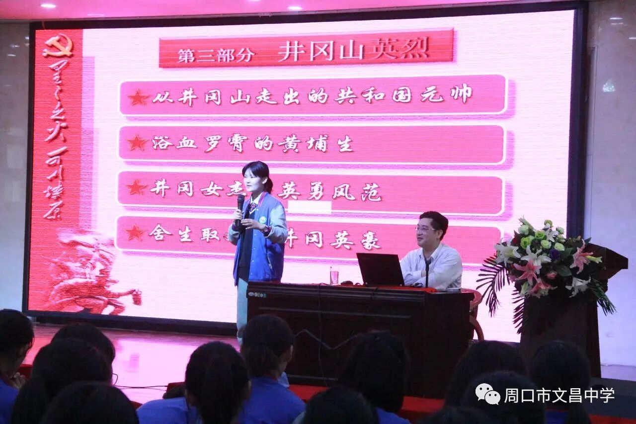 4月27日,中国红色革命爱国主义教育基地井冈山精神进周口宣讲活动在文昌中学举行,团市委副处级纪检员杨朝晖、团市委学校部部长马仁灵、团中央井冈山教育基地宣传推广处联络部副部长江龙出席活动。