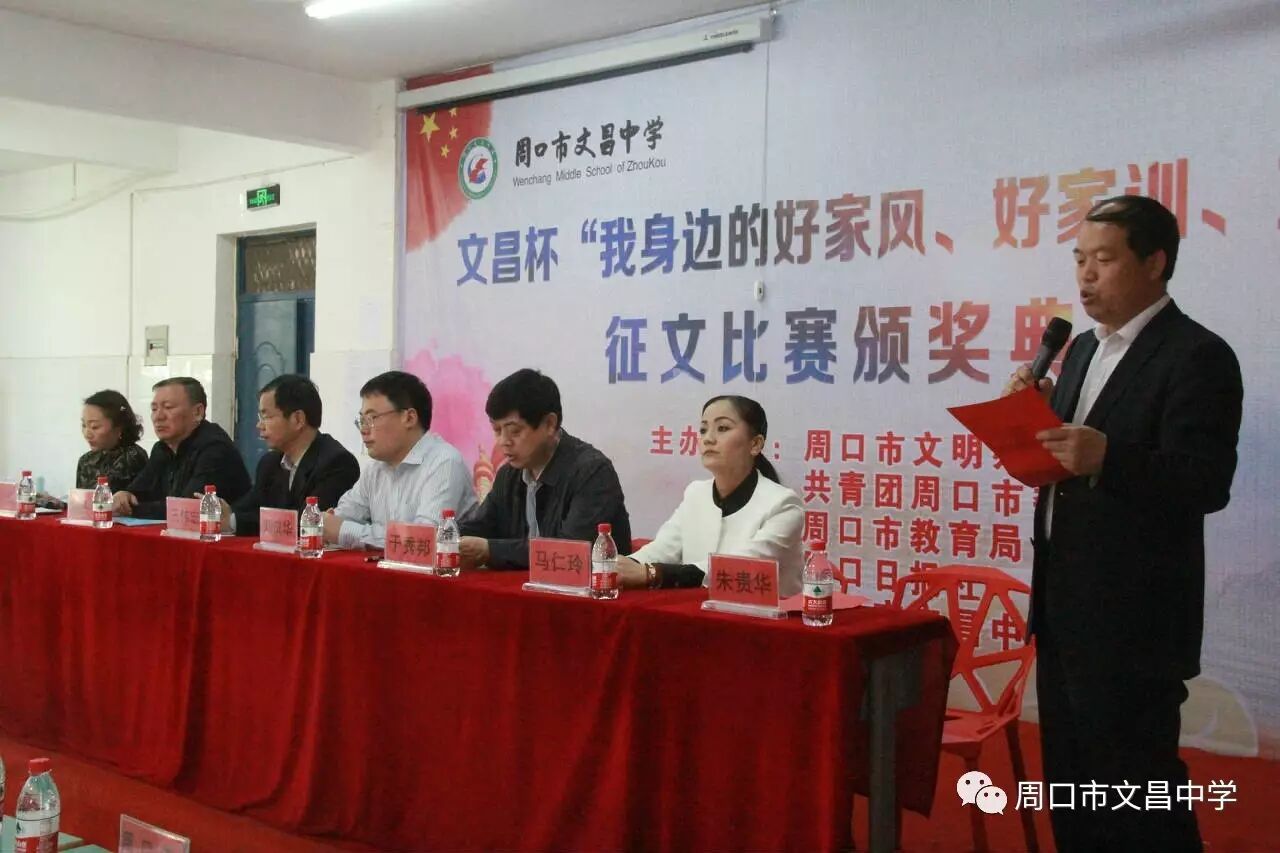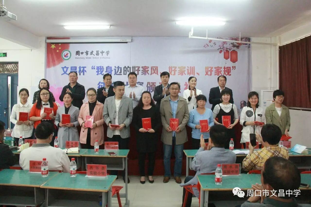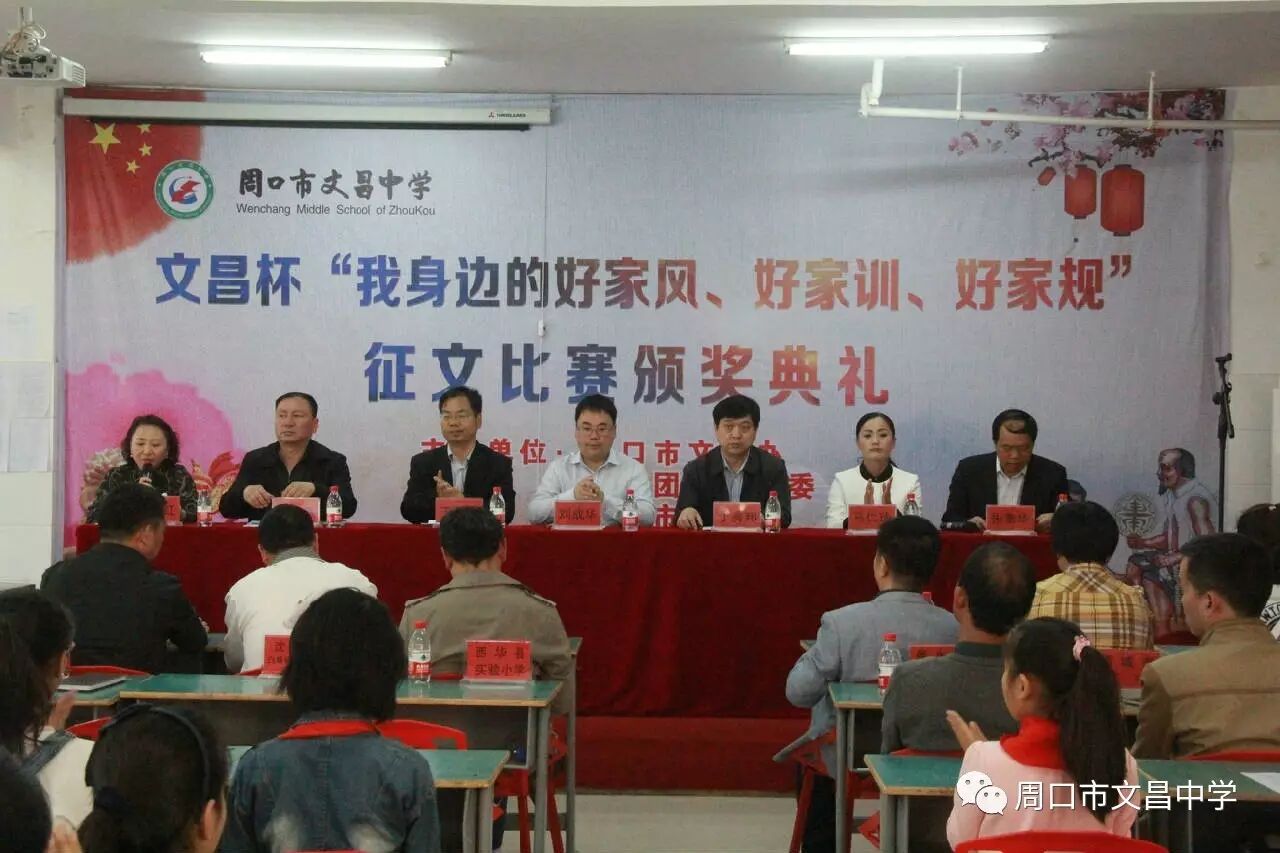 2017年4月24日,由周口市文明办、周口团市委、周口市教育局、周口日报社主办,周口市文昌中学承办的文昌杯我身边的“。好家风、好家训、好家规”征文比赛颁奖典礼在文昌中学举行