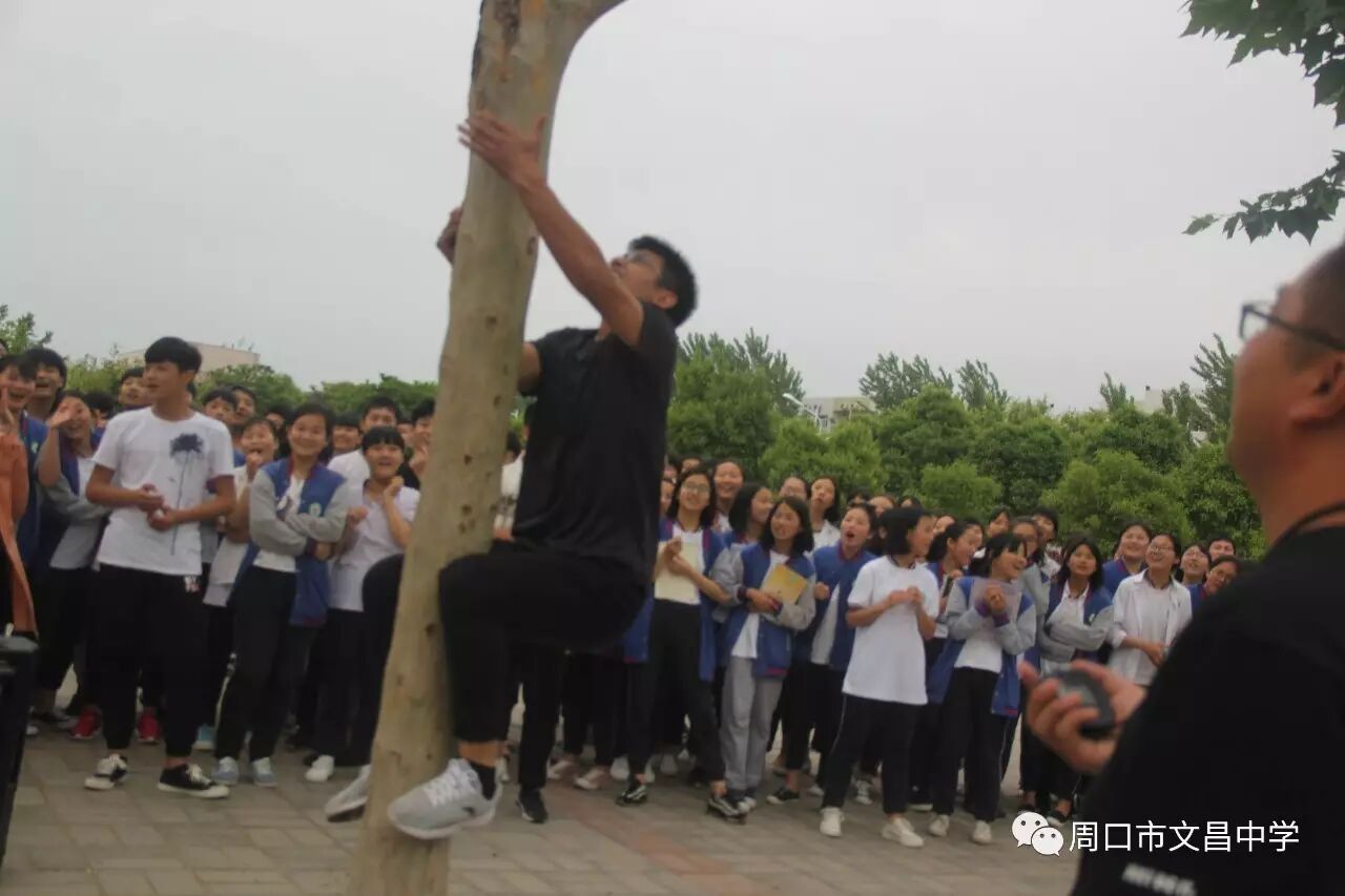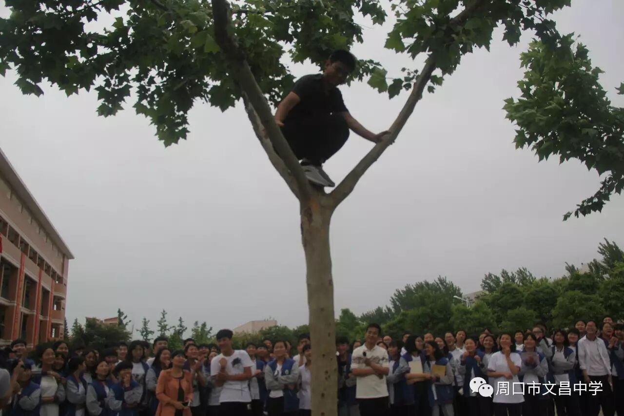 体育不应仅仅着眼于提高学生体质,更要培养学生勇于面对挑战的胆识,文昌中学另辟行径,举行独特的体育比赛——爬树比赛。